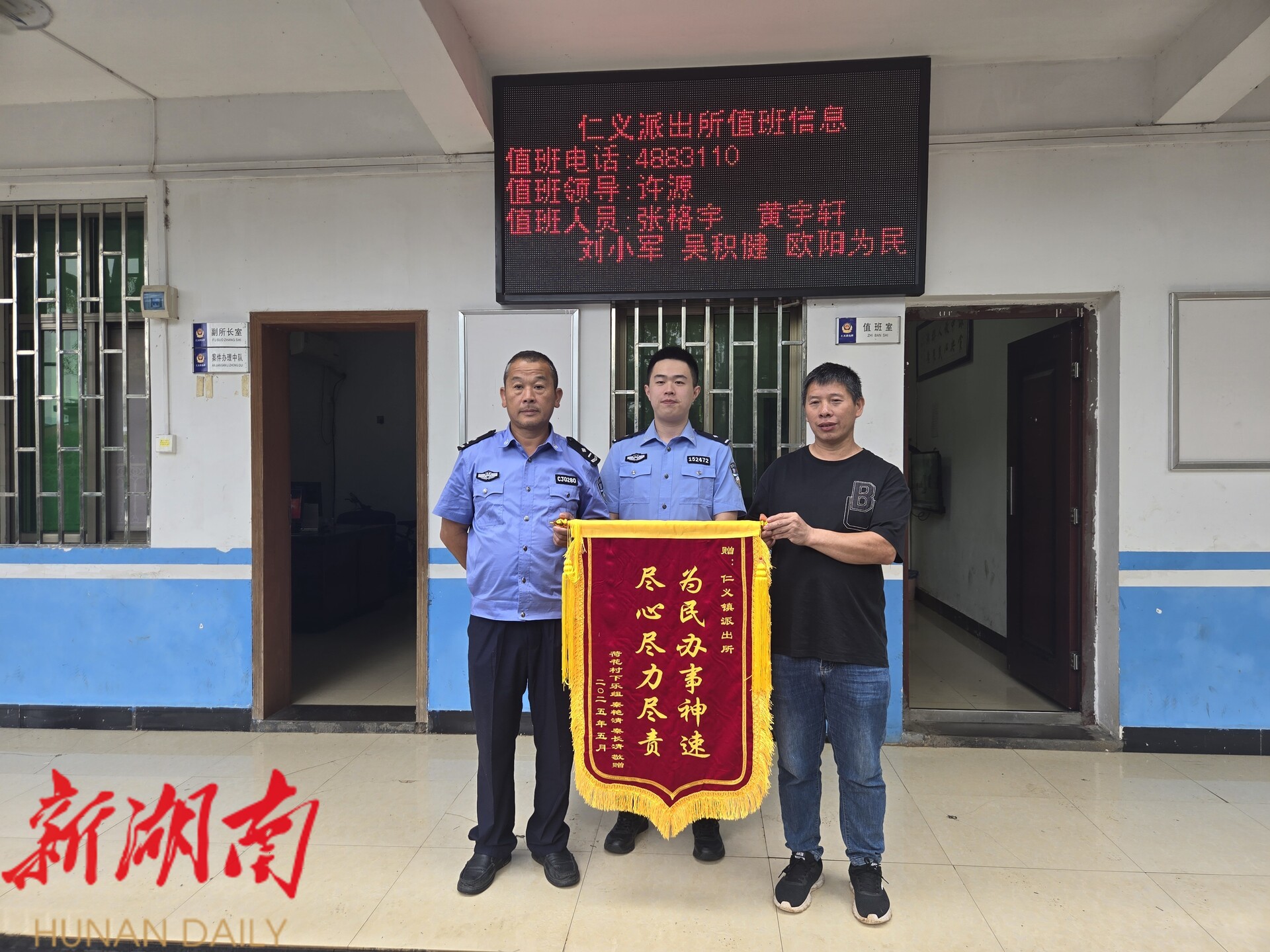 5月29日一大早,走失老人亲属来到仁义派出所为办案民警送上锦旗,感谢他们及时找回走失老人。原来,5月27日上午9时,仁义派出所接到村民报警称自己年近90岁的母亲早晨外出走失,家人多方寻找毫无进展。考虑到走失老人年事已高,且强降雨即将过境,如不及时找回恐有生命危险,接警民警向上级机关汇报,协调县公安局刑侦大队警犬中队协同搜救。
