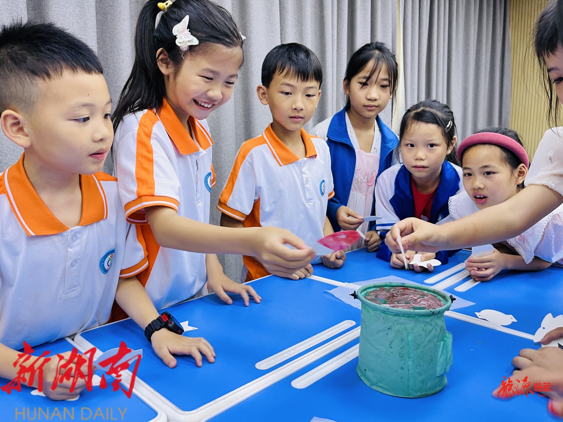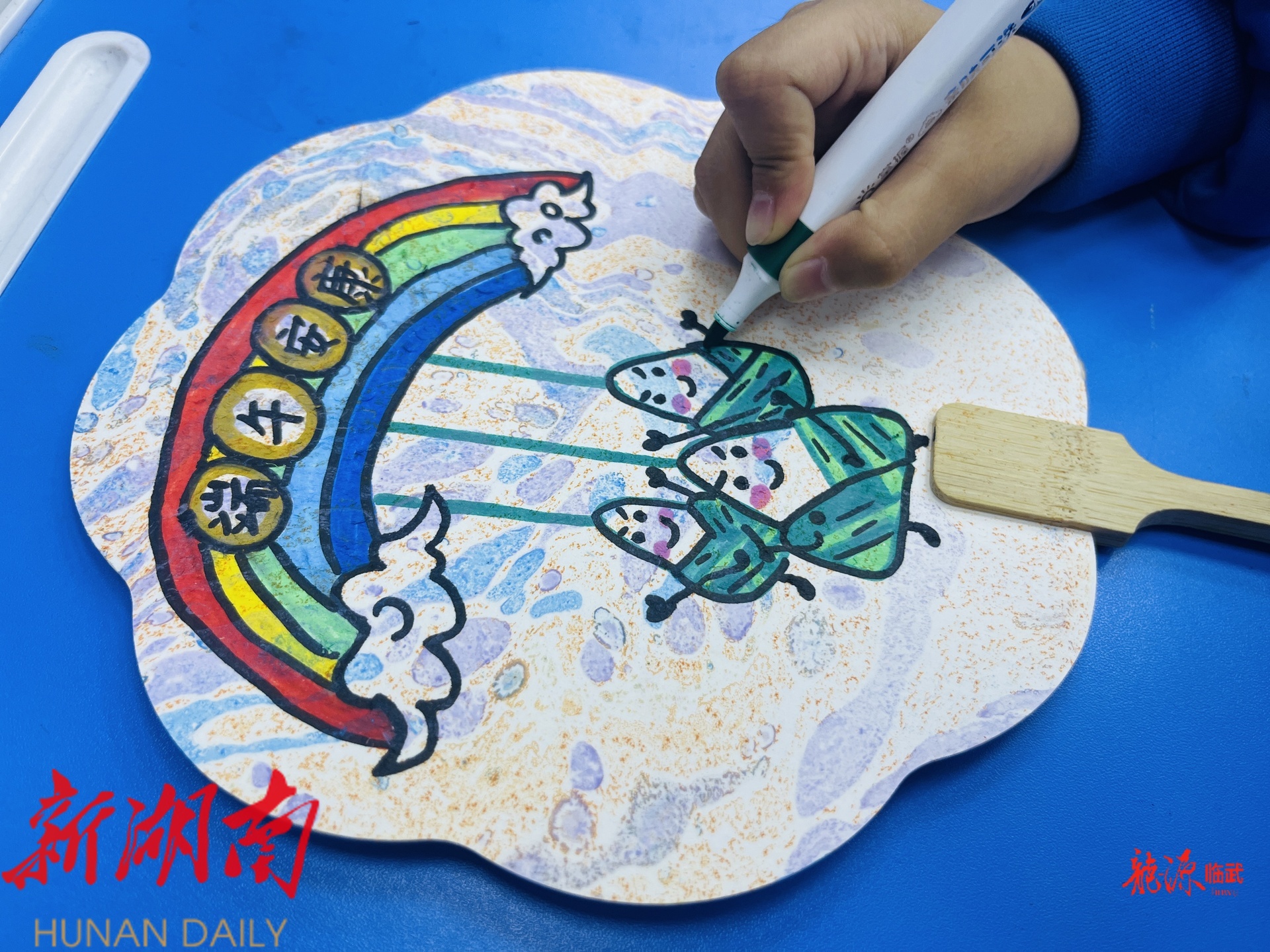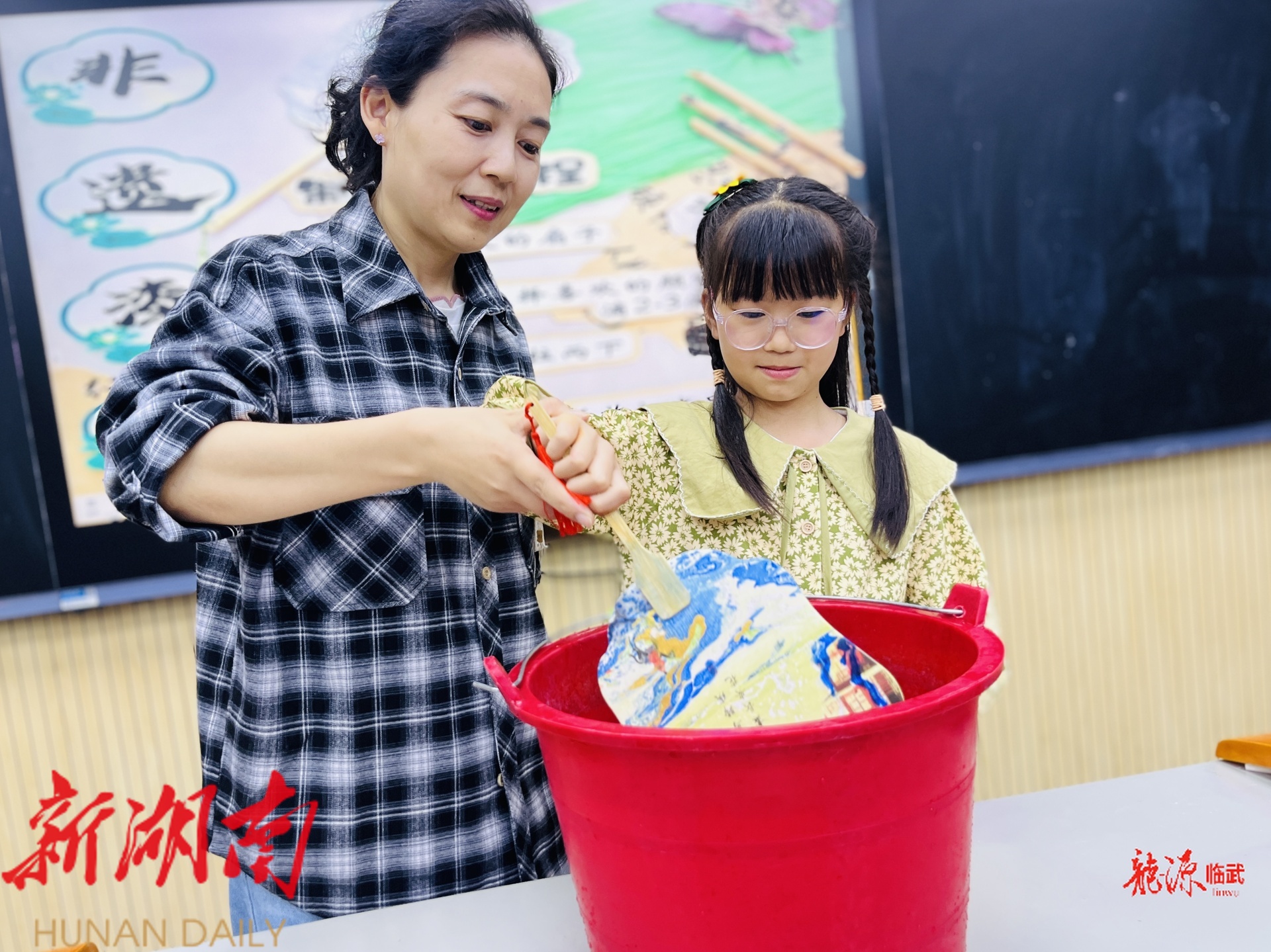 5月29日,在临武县八完小2203班的教室里,一堂别开生面的非遗体验课正热闹上演。老师化身“非遗导师”,娓娓道来 漆扇的千年历史,现场展示“水影成画” 绝技 ——滴漆入水、轻搅成纹、素扇浸入……一幅天然晕染的图案跃然扇面。孩子们目不转睛惊叹连连,迫不及待化身“小小传承人”,亲手调配色彩、搅动水面、浸染扇面,感受“一半人为,一半天成”的东方美学,创造出独一无二的非遗艺术作品。
