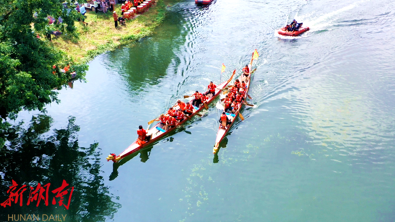 比赛中,来自全镇的10支龙舟队伍和“预”智湘佳队集结亮相。随着发令枪响,一支支龙舟如离弦之箭破浪前行,选手们齐心协力、奋勇拼搏,岸边铿锵有力的鼓点声与观众的助威声交织,将现场的气氛推向高潮,呈现出一幅“速度与激情”的生动画面。