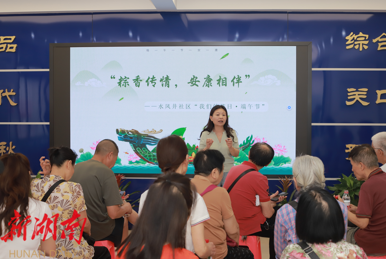 望麓园街道水风井社区书记结合端午“清正廉洁”的精神内核,以古喻今,引用屈原“宁赴湘流,葬于江鱼之腹中。安能以皓皓之白,而蒙世俗之尘埃乎”的铮铮誓言,号召全体党员干部和居民群众传承廉洁自律的精神品质,从传统节日文化中汲取崇廉尚洁的力量,让清廉之风浸润社区的每一个角落。