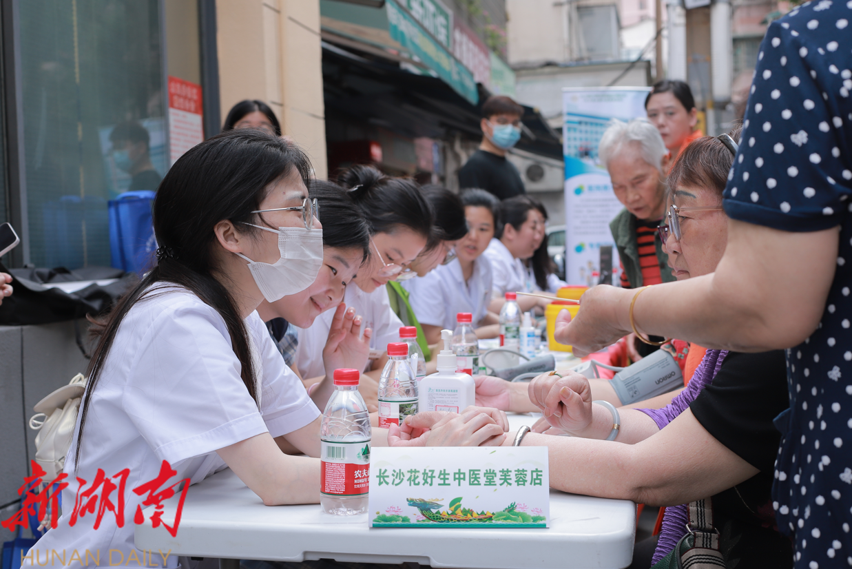 便民服务区里,各合作单位纷纷发挥自身优势,为居民提供贴心服务。颐而康颈肩腰腿痛医院、长沙花好生中医堂芙蓉店、望麓园街道卫生服务中心的医护人员热情地为居民进行健康义诊,把脉问诊、理疗服务、健康知识科普,全方位守护居民健康;望麓园派出所户籍民警通过典型案例分析,向居民揭露各类诈骗手段,普及禁毒知识,提醒大家守住“钱袋子”的同时,也倡导诚信守法、廉洁从业的价值理念,引导居民树立正确的财富观和消费观。