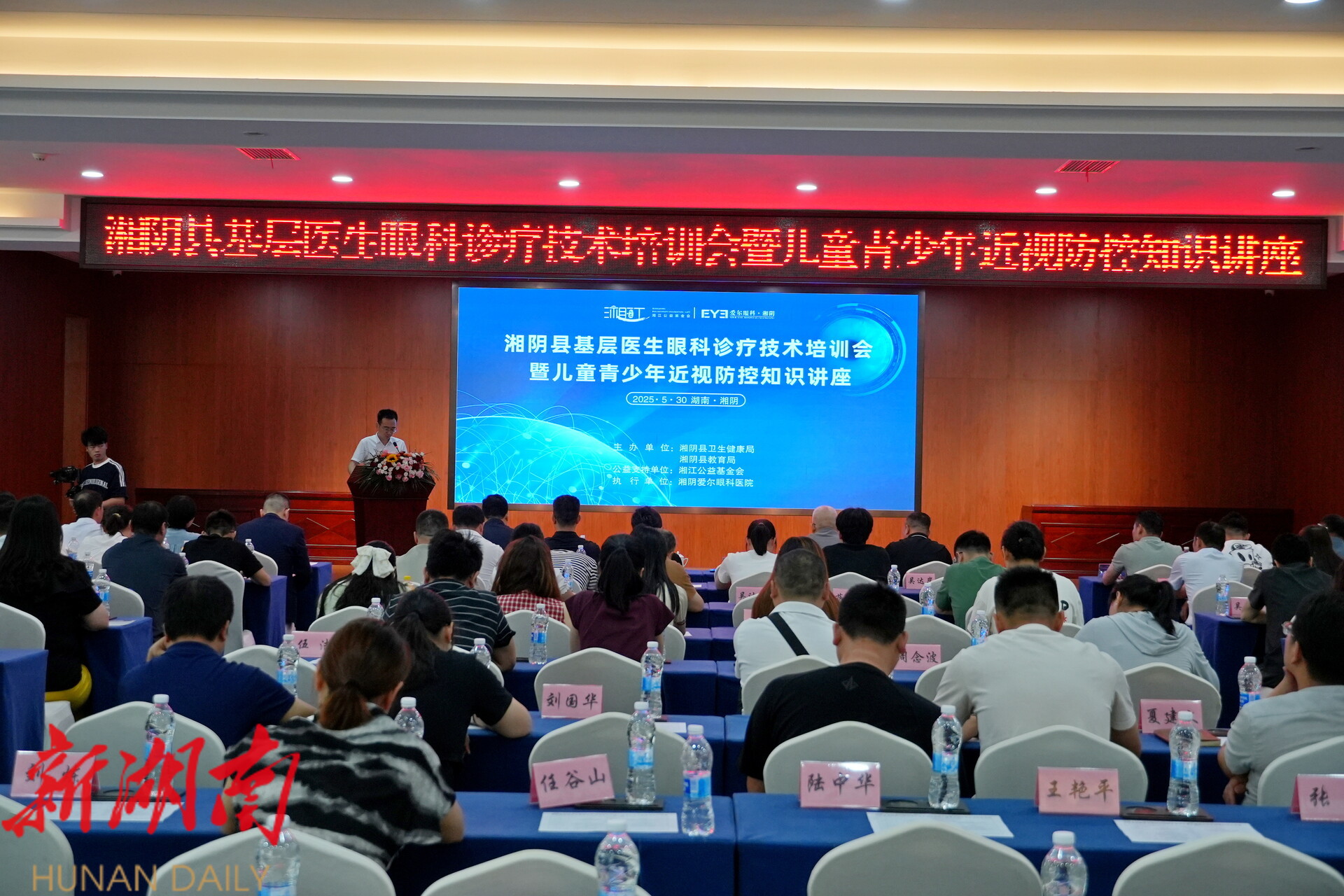 湖南日报·新湖南客户端5月30日讯(通讯员胥扬 李阳)基层医生是守护群众眼健康的“第一道哨兵”。5月30日,在第30个全国“爱眼日”到来之际,由湘阴县卫生健康局、湘阴县教育局联合主办,湖南省湘江公益基金会公益支持,湘阴爱尔眼科医院具体执行的“湘阴县基层医生眼科诊疗技术培训会暨儿童青少年近视防控知识讲座”在湘阴宾馆举办。全县各级医疗机构骨干、学校近视防控负责人等齐聚一堂,共同学习充电,为守护群众“光明未来”夯基蓄能。
