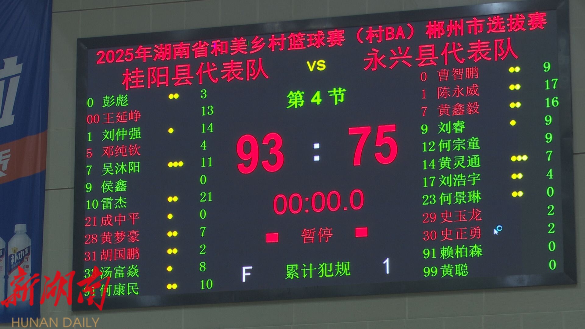 新桂阳5月30日讯(记者 刘克坚 唐汀 )5月29日,2025年湖南省和美乡村篮球大赛(村BA)郴州市选拔赛半决赛在桂阳县全民健身中心举行。两场半决赛中,桂阳县代表队、宜章县代表队分别战胜各自对手,晋级决赛,争夺本次比赛冠军。