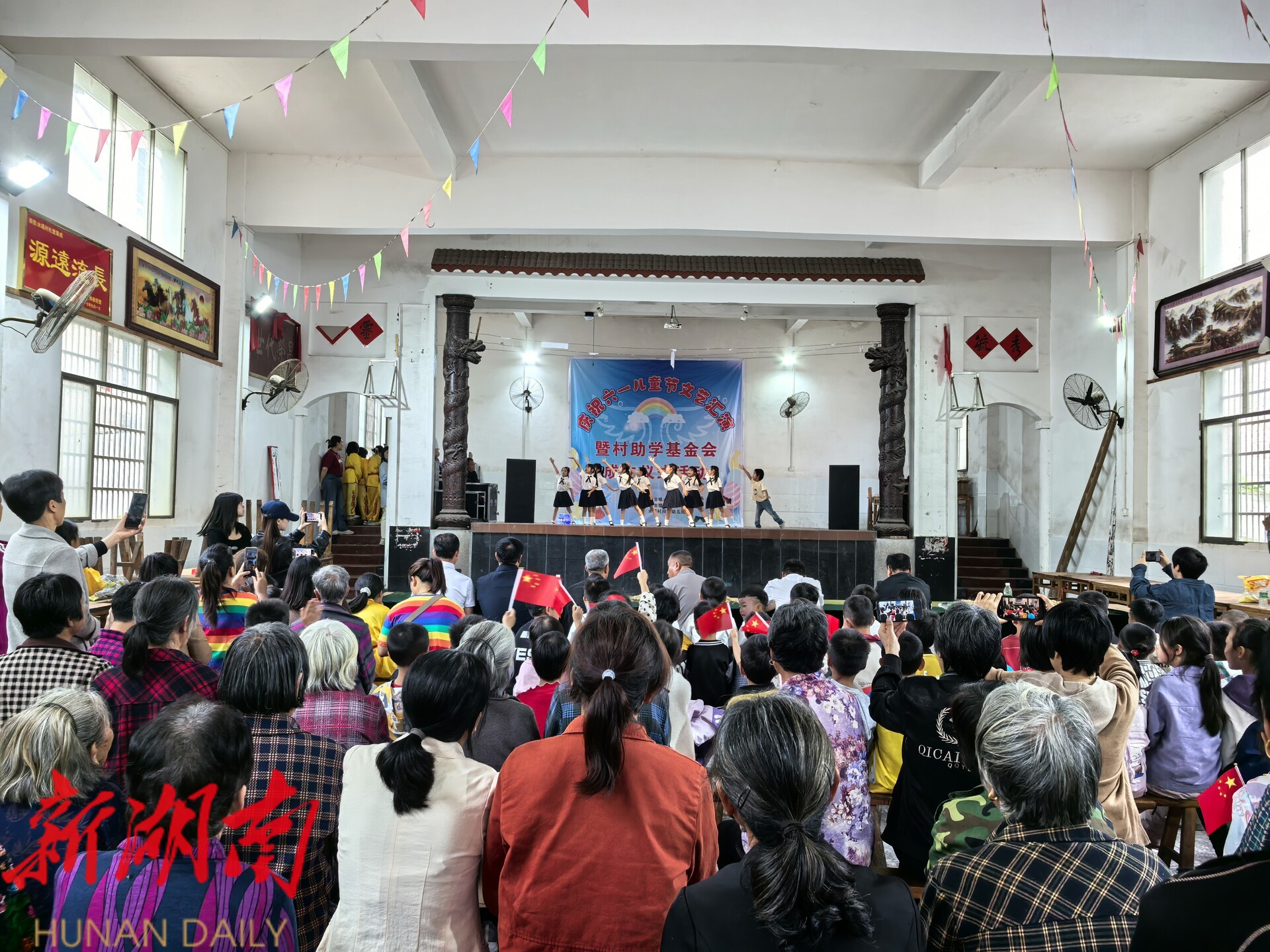 新桂阳5月30日讯(记者 刘娣) 05月29日, 塘市镇水尾村举行庆六一儿童节文艺汇演暨村助学基金会成立仪式。