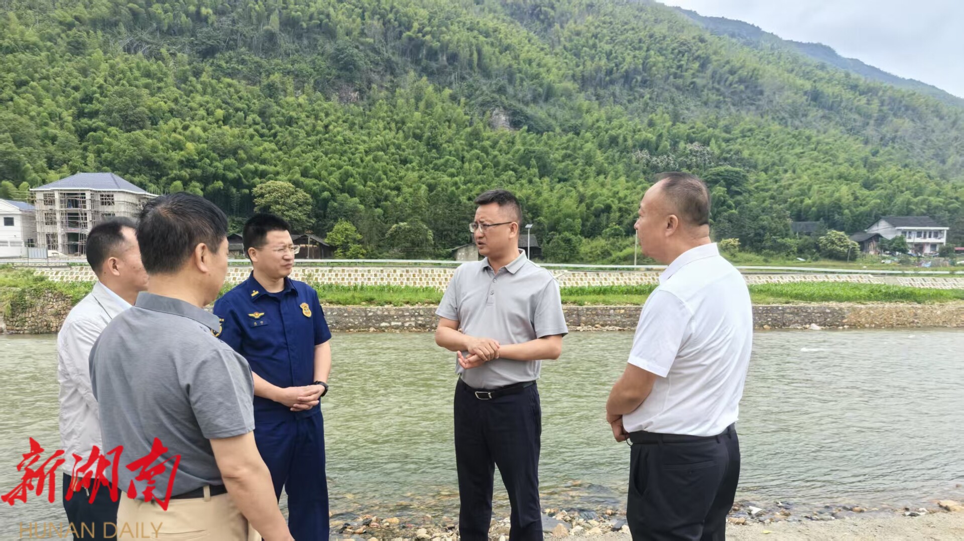 在蓼水河花园高坪村拦河坝水域、大业冲水库,许治国检查了警示标志设置、救生设备配备,详细了解水位、巡堤查险、监测预警、应急处置等情况。