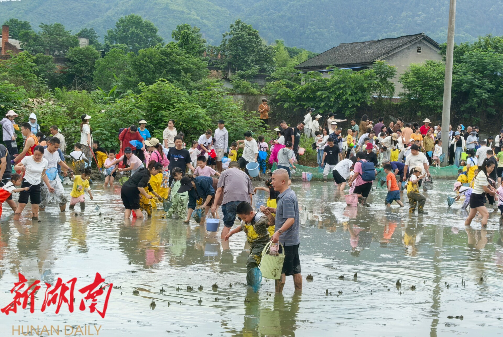 活动现场,亲子家庭手持小水桶踏入水田,开启捉鱼挑战。孩子们兴奋穿梭,家长们也化身“顽童”,水田里水花四溅,欢呼声不断。抓鸭子游戏环节更是将气氛推向高潮,加油呐喊声响彻田野。