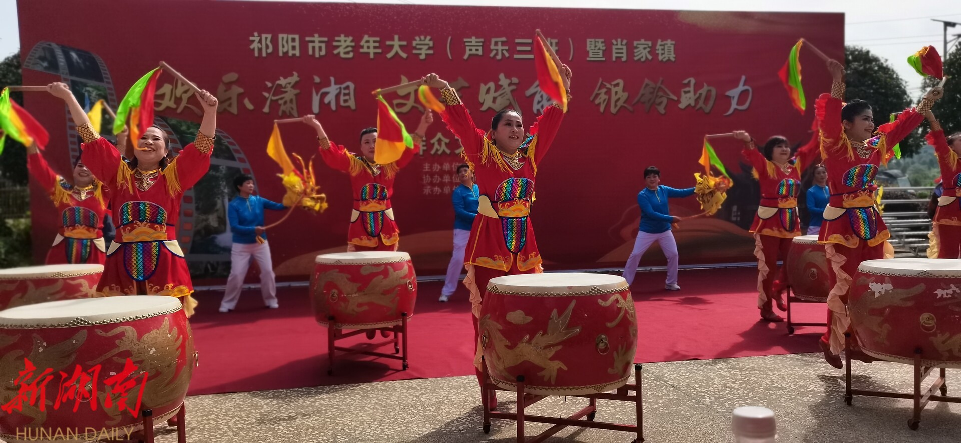 湖南日报·新湖南客户端5月30日讯(通讯员 赵安原) 5月30日,一场别开生面的“欢乐潇湘 文艺赋能 银龄助力”群众文艺汇演在祁阳市肖家镇肖家村肖家庄广场隆重上演。来自该市老年大学声乐三班的60余名老年学员与肖家镇群众和学生联袂演绎14个精彩节目,用群众喜闻乐见的舞蹈、歌曲演唱、模特秀、三句半、祁阳小调等艺术形式,为当地群众奉献一场盛大的文艺大餐。