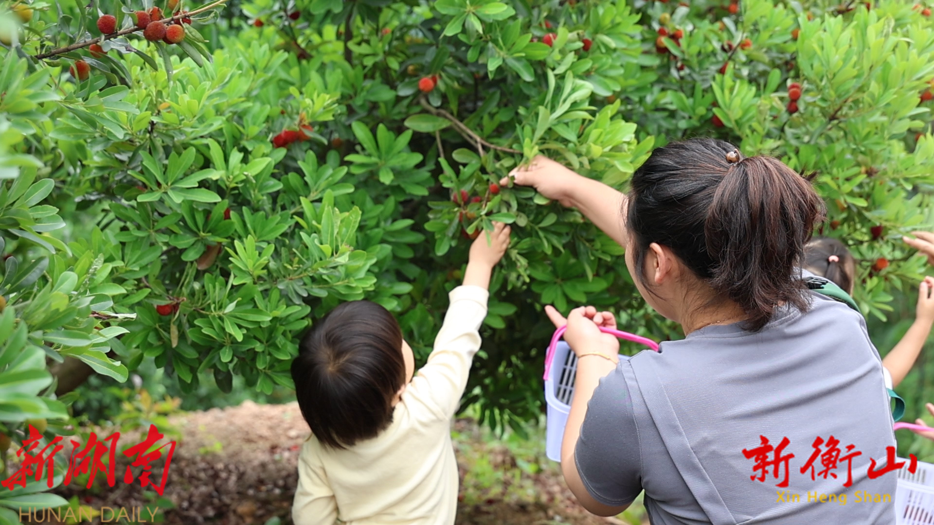新衡山客户端5月30日讯(记者:廖晶 周彭斌)初夏时节,衡山县开云镇桂花村的70余亩杨梅陆续成熟,吸引了众多游客前来体验采摘的乐趣。
