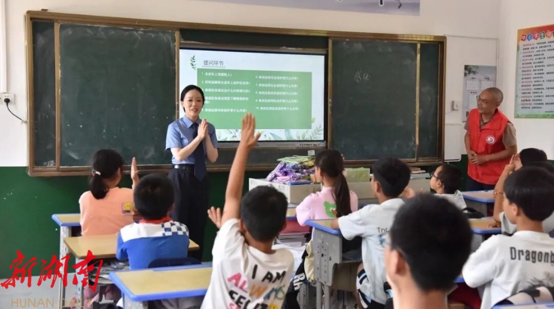 5月26日,雨湖区人民检察院联合雨湖区民政局、雨湖区志愿者协会走进姜畲镇奇头学校,举办了一场以普及《未成年人保护法》为主的法治教育活动。检察官化身“法治讲师”,围绕“六大保护”,用孩子们听得懂的语言,重点讲解了家庭监护职责、学校保护义务、预防网络沉迷、防范性侵害、强制报告制度等核心内容。现场设置了趣味法律知识有奖问答,同学们踊跃参与,在轻松氛围中加深了对法律知识的理解。