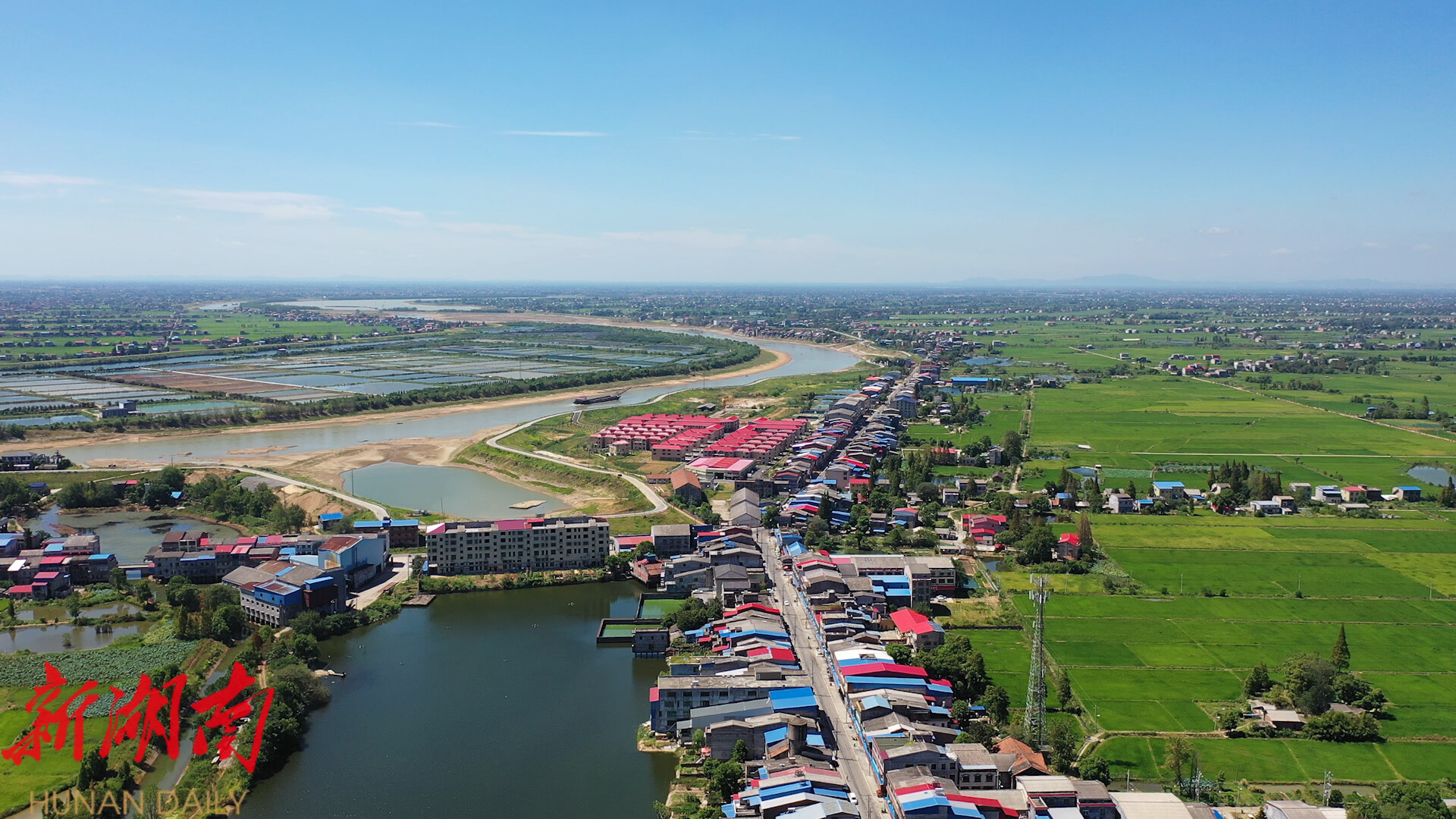 俯瞰湘滨,阡陌交通,房屋错落有致,如同一幅秀美的画卷。