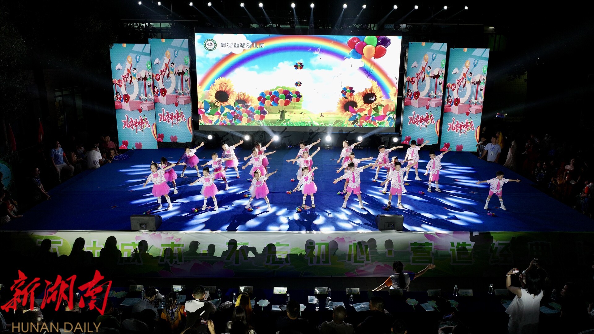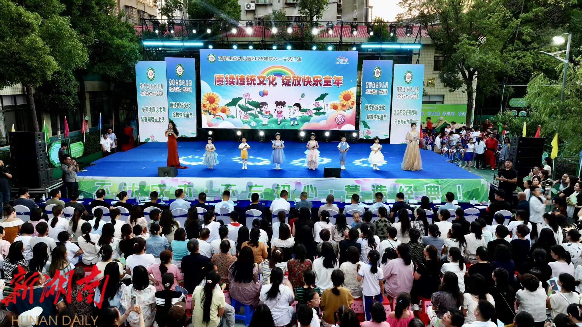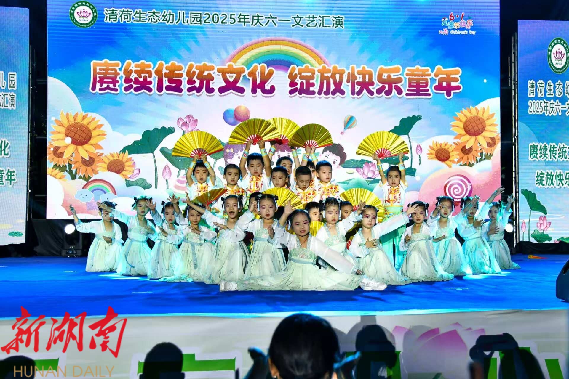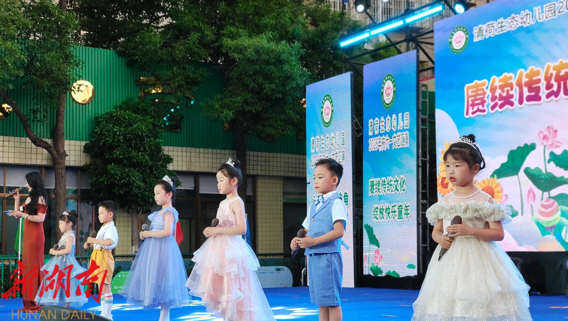 湖南日报·新湖南客户端5月30日讯(通讯员 暮冬)传文化薪火,庆六一欢歌。在端午、儿童节即将来临之际,5月29日晚,湘阴县清荷生态幼儿园以节庆为媒、以文化为魂,举办“赓续传统文化,绽放快乐童年”庆六一文艺汇演,让孩子们在欢乐中触摸历史脉络、在笑声里传承华夏文明。