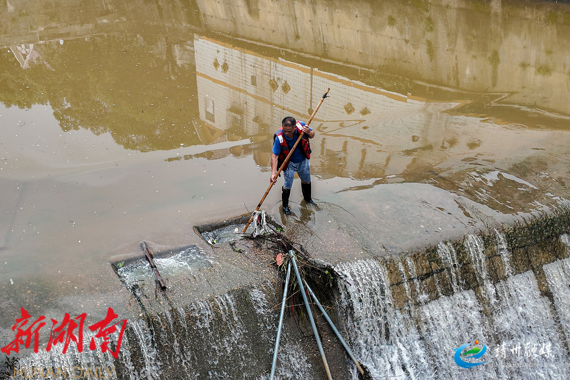 靖州融媒5月30日讯 (通讯员 胡斐 彭英 胡月)5 月 30 日,降雨过后,靖州苗族侗族自治县环卫工人迅速行动,对异溪河与渠江交汇处河道内的树枝、杂物进行全面清理,守护河道“颜值”。