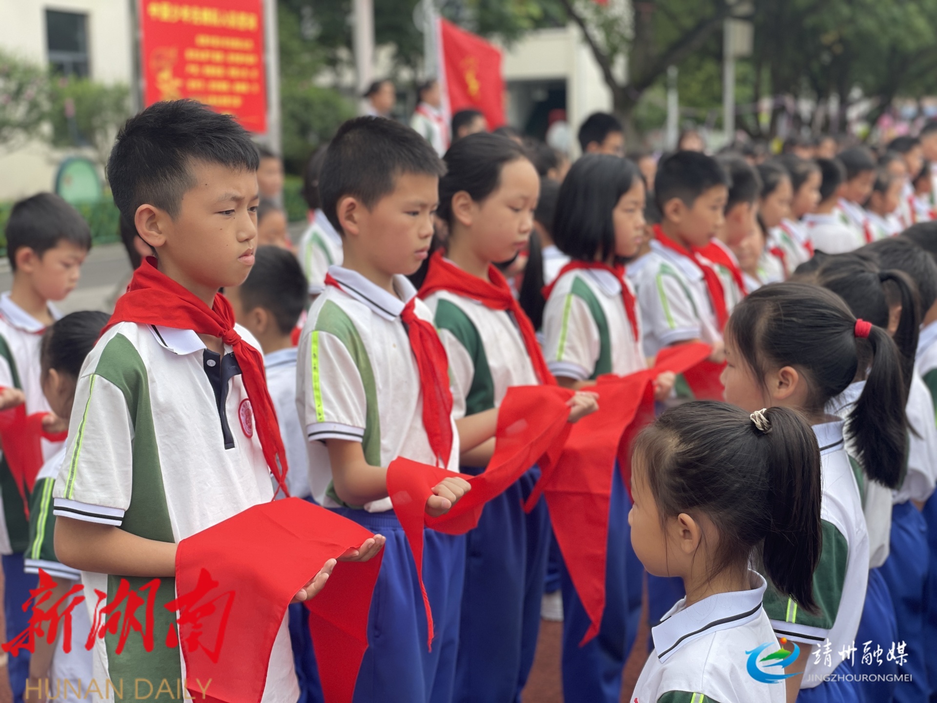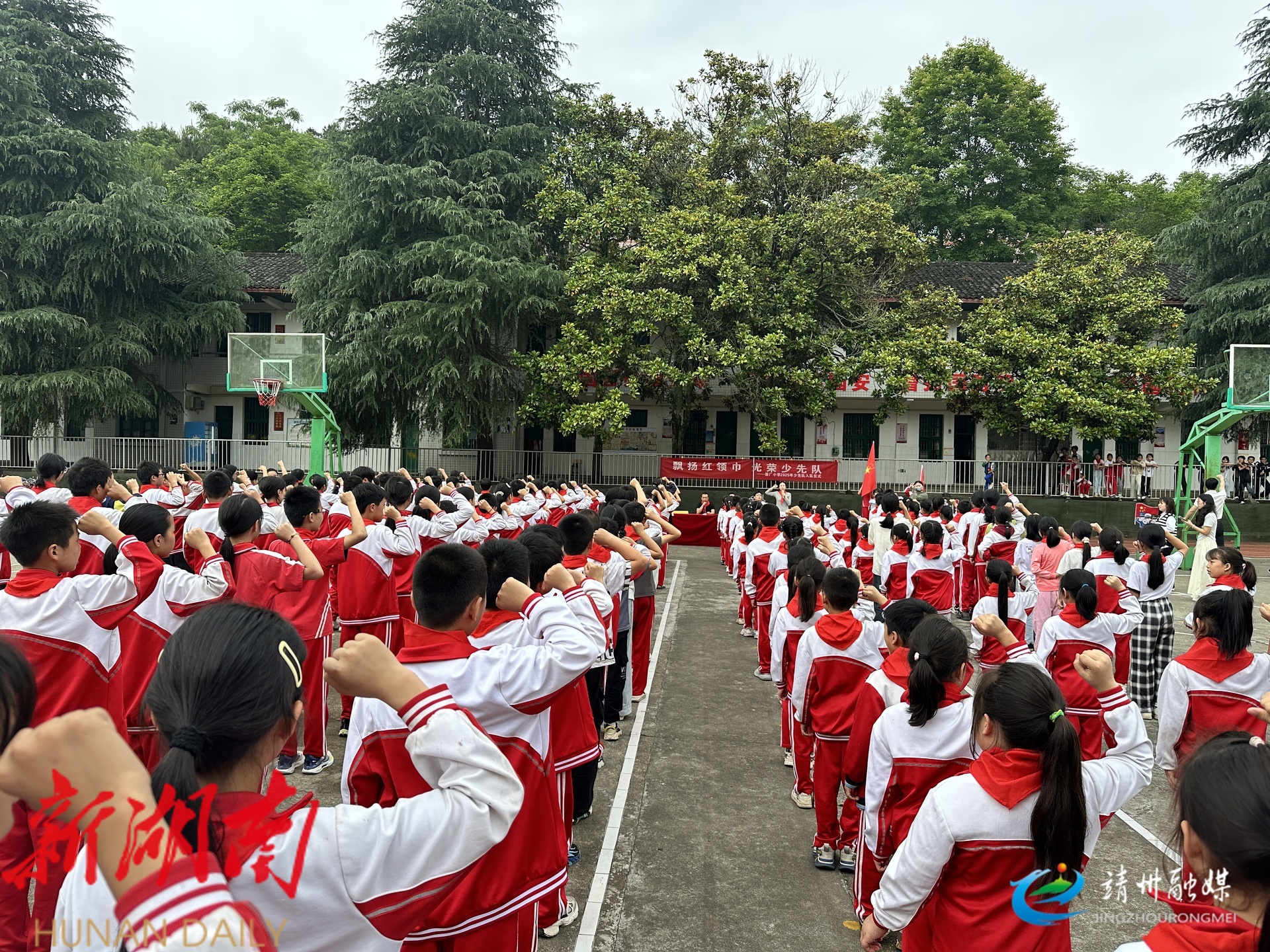 新厂镇中心小学的少先队员庄严宣誓(邓昭霞 摄)
