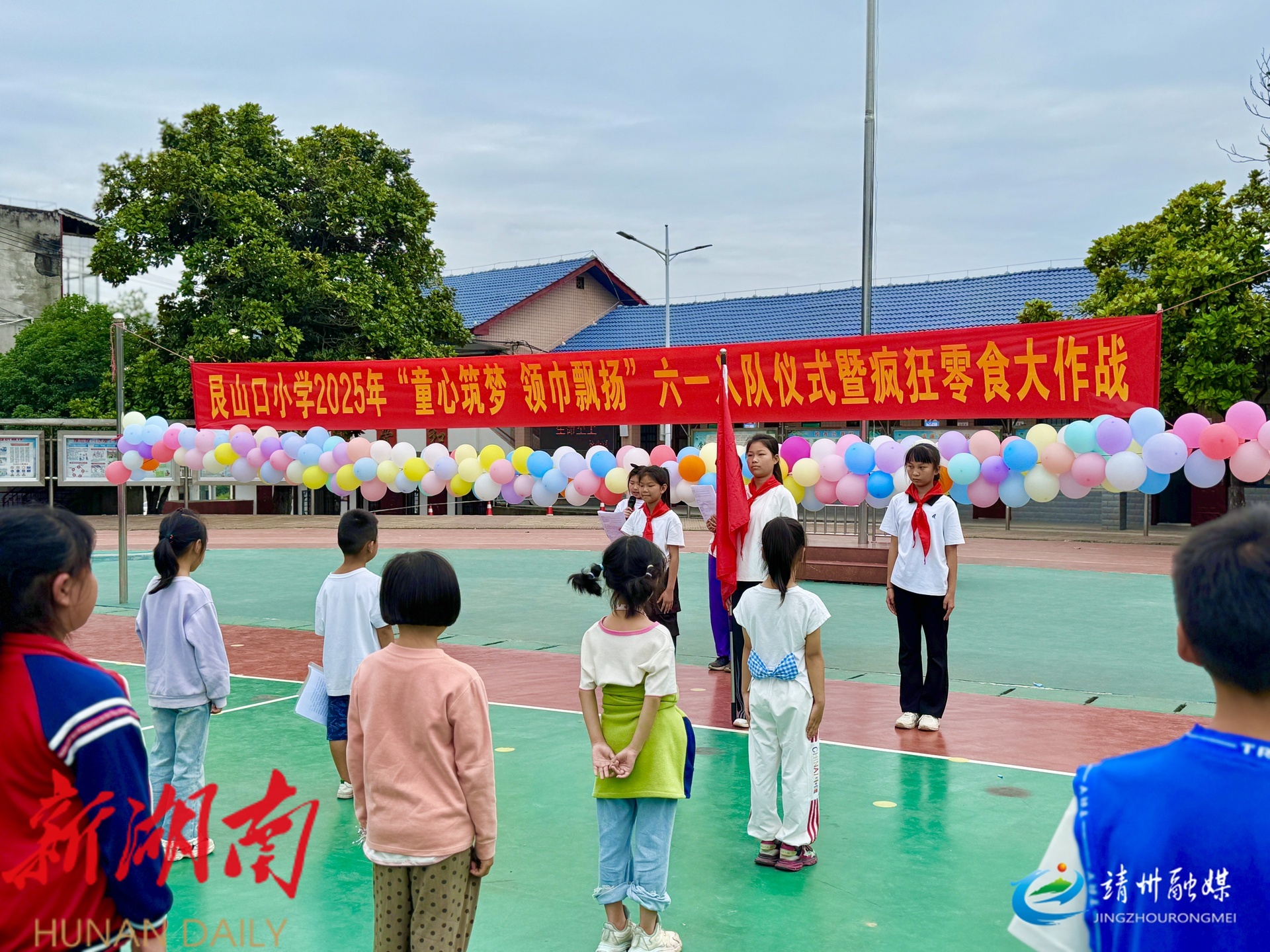 艮山口小学举行新队员入队仪式暨六一“疯狂零食大作战”活动。活动在庄严的少先队入队仪式中拉开序幕。队歌嘹亮,队旗飘扬,高年级老队员为新队员佩戴鲜艳的红领巾。新队员们高举右拳,在队旗下庄严宣誓:“准备着,为共产主义事业贡献力量!”随后,“疯狂零食大作战”将节日气氛推向高潮。“单手闪电侠”“球球零食大乱斗”“师生同心桥”“零食风暴擂台”等游戏中,教师化身“零食战士”与学生并肩作战,现场欢笑声不断。