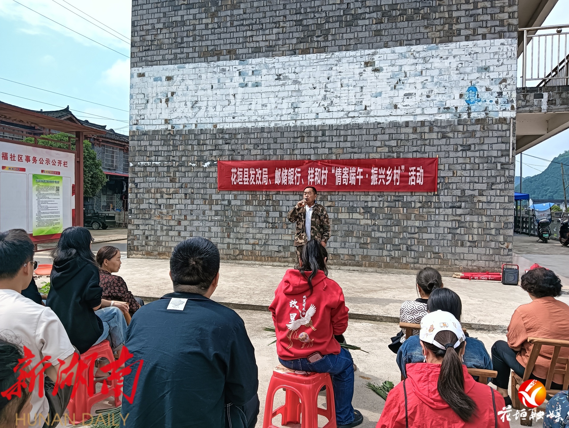 在村部大院,一条写有“情寄端午,振兴乡村”的横幅格外醒目。县发改局、县邮储银行干部与祥和村村民纷纷上台朗诵诗歌,抒发对祖国的热爱之情。