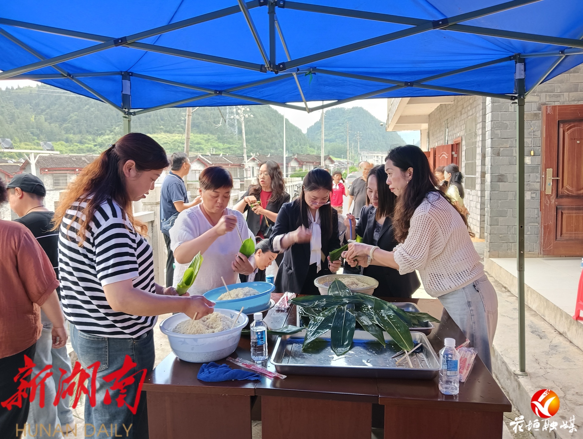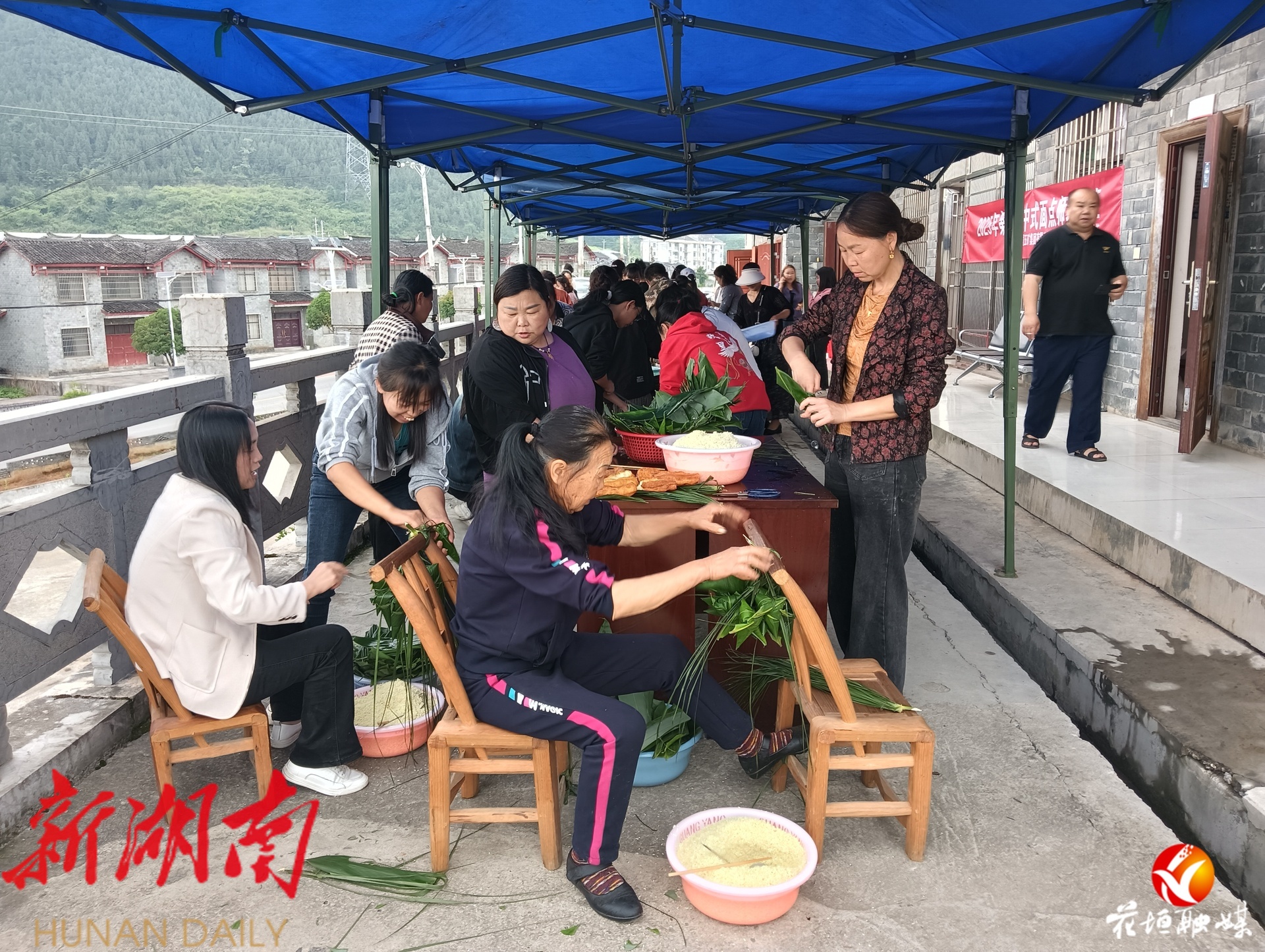 湖南日报·新湖南客户端5月31日讯(通讯员 石兴伦 吴茂银)端午佳节,粽子飘香。5月30日,花垣县发展和改革局与中国邮政储蓄银行花垣县支行组织全体干部来到龙潭镇祥和村易地搬迁安置区,与当地村民共同开展端午节主题活动。干部与群众一起参与诗歌朗诵、炸油条、包粽子等活动,在体验传统民俗节日氛围、促进民族团结中迎接端午佳节。