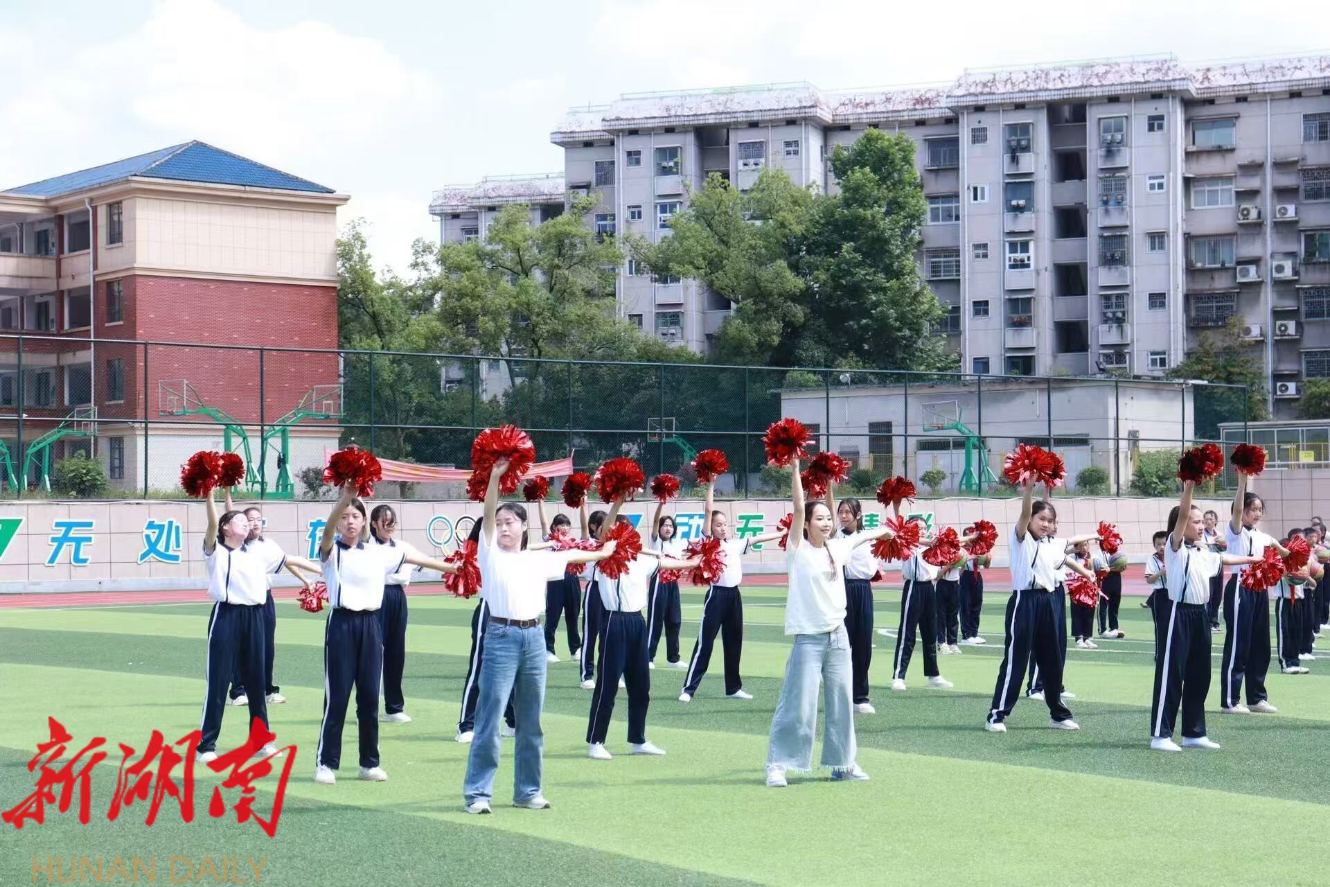 湖南日报·新湖南客户端5月31日讯(通讯员 周荣 图片 谭剑丽 戴嘉玲)5月29日下午,冷水江市城东学校在运动场隆重举行了一场主题为“勿忘国耻,立志报国”的三大球花式表演活动。此次活动旨在通过独特的体育表现形式,激发学生的爱国情怀,培养他们的团队精神和顽强意志,同时也为校园文化生活增添了一抹亮丽的色彩。