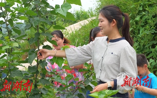 回到家乡后,杨昭珞依托家庭已有的农业基础,创立湖南省昭博农林科技有限公司,全力打造丽云山庄桑果农旅综合产业园。她将所学的果树生态种植技术深度应用于实践,在种植园记录下超2000组生长数据,针对不同生长阶段调整水肥管理方案,2024年首批“丽云桑葚”新品种挂果,成熟后的“丽云桑葚”颗颗饱满、色泽诱人,果肉多汁清甜,一经上市便成为市场“抢手货”。依托优质鲜果原料,利用低温冻干技术锁住98%的营养成分,公司创新开发出零添加工艺桑葚干、无花果干、桑叶茶、桑葚酒等20余款深加工产品,形成了涵盖休闲零食、健康饮品、特色食材的多元化产品矩阵。凭借在农业科技创新、产业融合发展等方面的突出表现,公司被认定为娄底市级农业产业化龙头企业、国家高新技术企业。