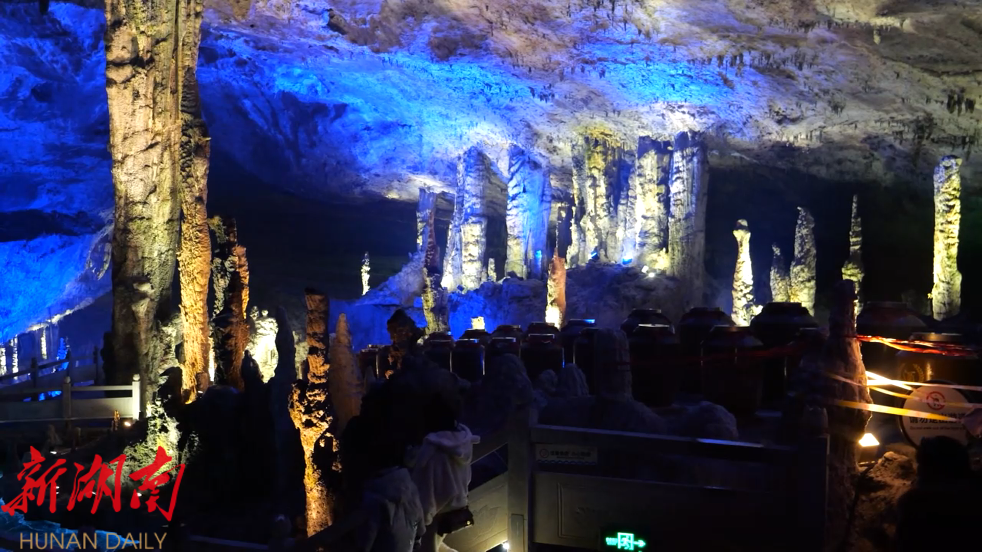 在亿年钟乳石丛中,隐藏着9处“宝藏”与“许愿”打卡点,家长可以和孩子根据线索破解洞穴谜题,开启藏有特色礼物的宝箱,每个宝箱旁设许愿红绸区,找到宝藏即可系带许愿,让祝福随九重仙境直上云霄。“我和爸爸妈妈参加了这个寻宝游戏,感受到了乐趣,寻宝结束我还兑换了礼物,这个礼物我很喜欢。”来自永定区的高子钰举起马灯和玩偶高兴地说道。