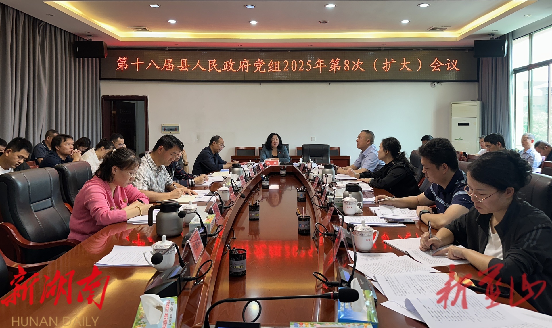 湖南日报·新湖南客户端5月30日讯 (通讯员 彭嘉玲 唐淑云) 5月30日,第十八届县人民政府党组召开2025年第8次(扩大)会议并开展理论学习中心组2025年第5次集体学习,县委副书记、县长邓群出席并讲话,县领导张国材、黄正军、蒋兴旺、唐建伟、唐璨、潘志鹏、李艳辉参加。