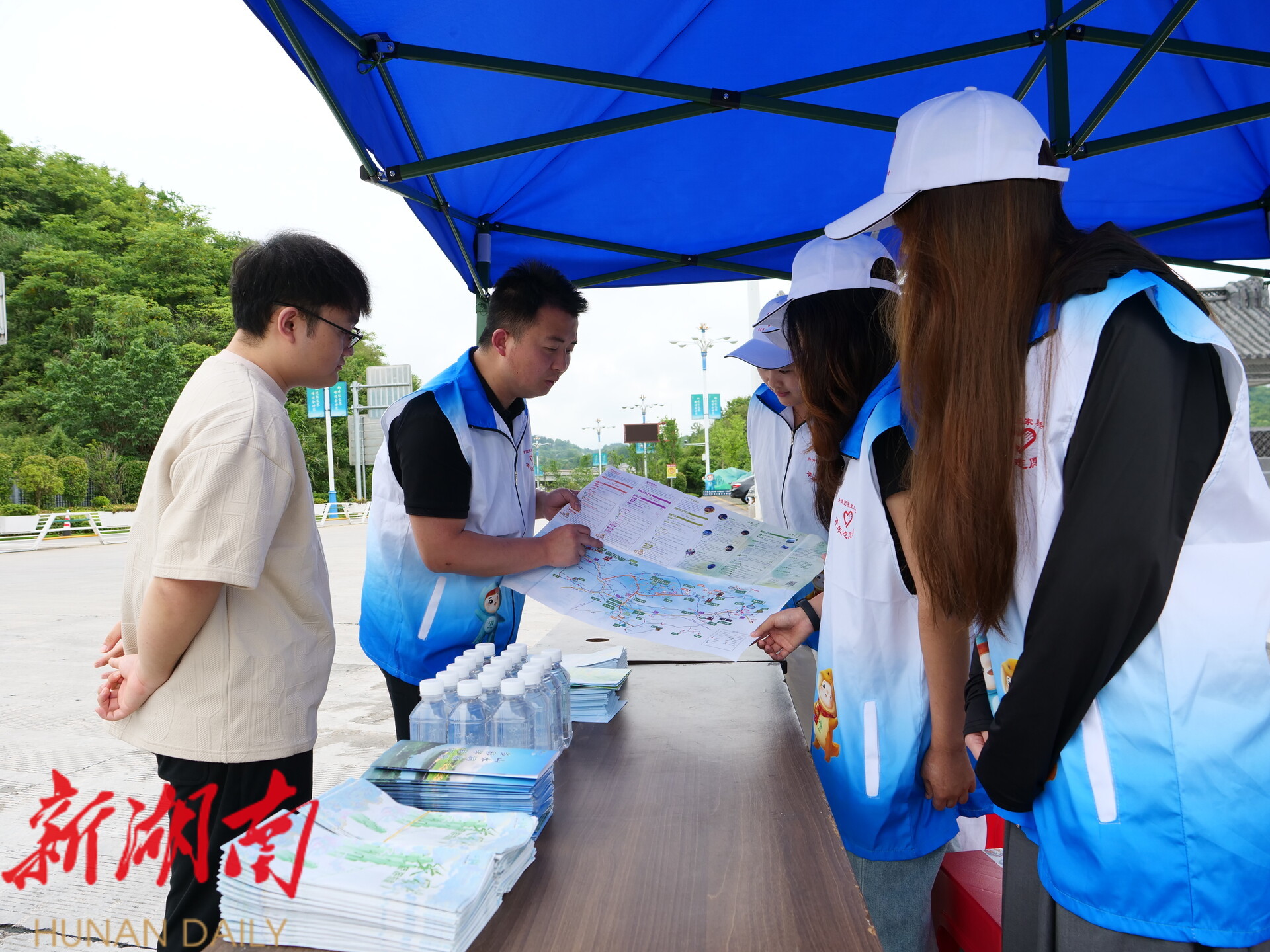 湖南日报·新湖南客户端6月1日讯(通讯员 高丽文)5月31日,端午假期首日,桑植志愿者团队的30名志愿者身着醒目的马甲,活跃在各个景区角落,开展志愿服务活动,为市民和游客送去帮助与便利。