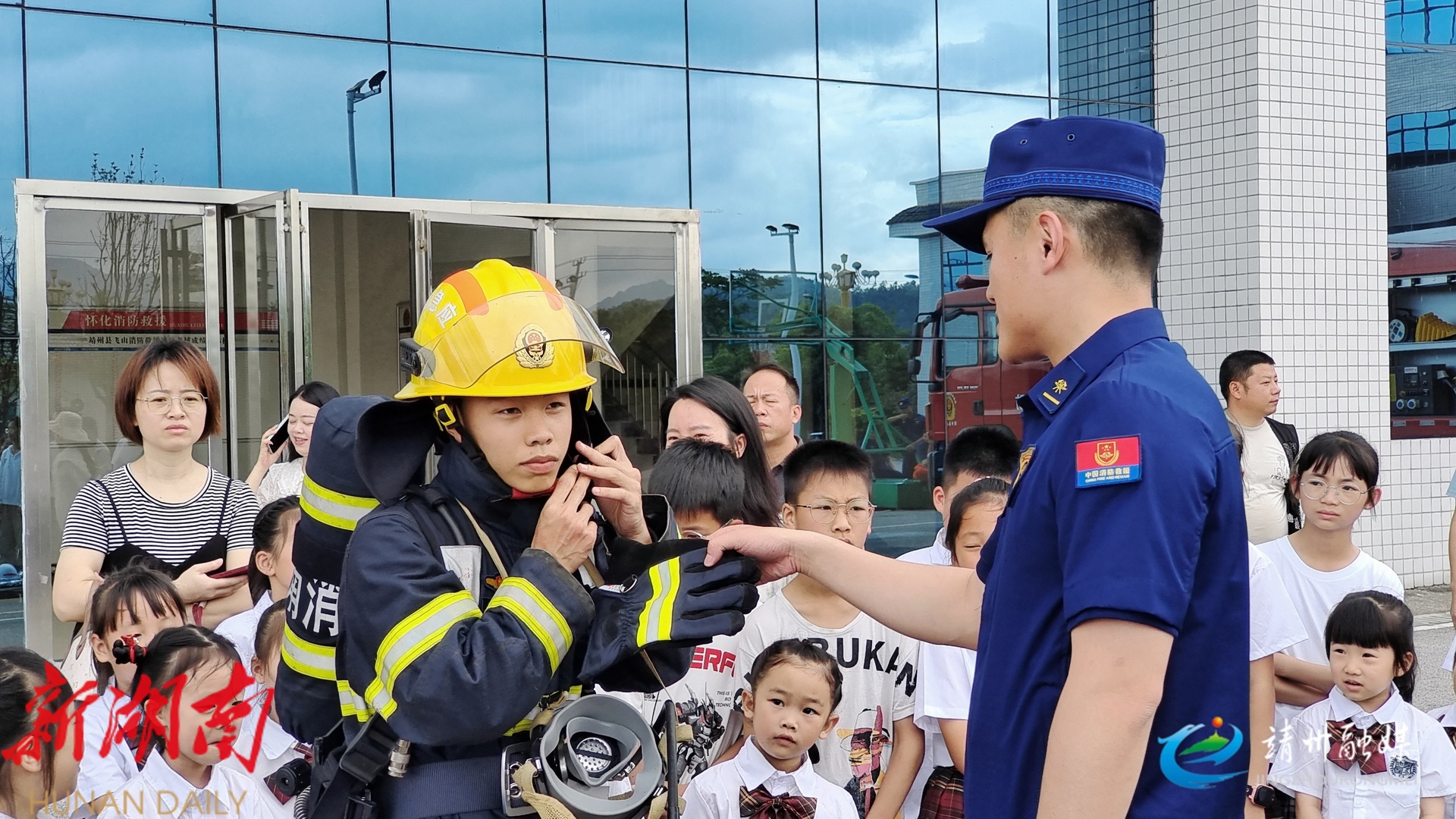 靖州融媒体中心6月1日讯 (记者 龙俊霓 通讯员 龙鑫)6月1日,靖州苗族侗族自治县消防救援大队开展“六一”消防站开放日活动。百余名学生与家长走进消防大队,“零距离”感受消防魅力,度过了一个别具意义的儿童节。