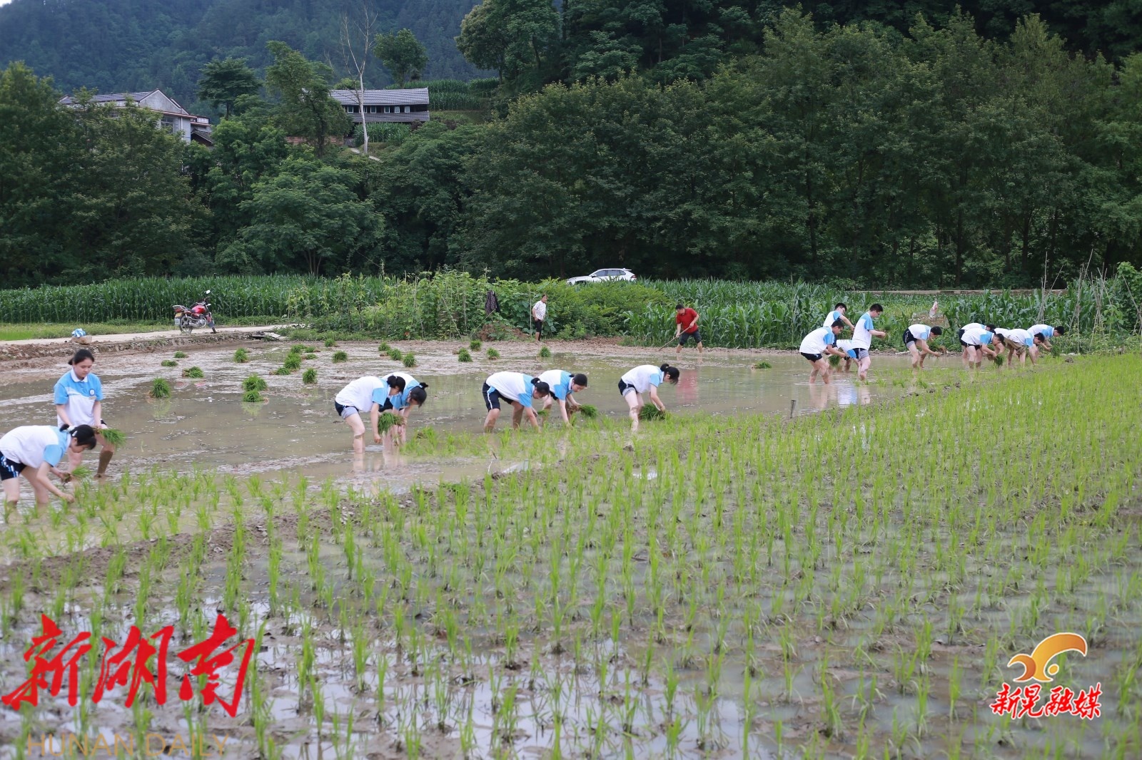 新晃融媒6月3日讯(通讯员:杨凌云)近日,新晃一中团委组织30名劲牌阳光学子走进扶罗镇伞寨侗藏红米种植基地,开展劳动教育活动。