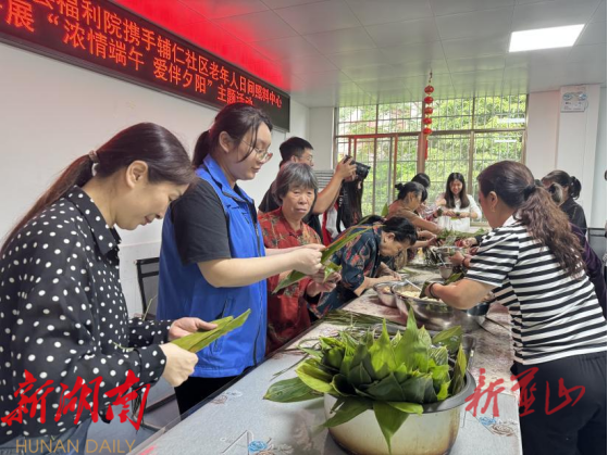 辅仁社区日间照料中心则在福利院组织开展了“粽叶飘香迎端午·敬老情浓暖夕阳”活动。社区老人一同折粽叶、填糯米、系棉线,一个个承载着祝福的粽子在欢声笑语中成型。90岁高龄的张奶奶看着自己包的粽子笑逐颜开:“这样的活动比吃粽子还甜!”