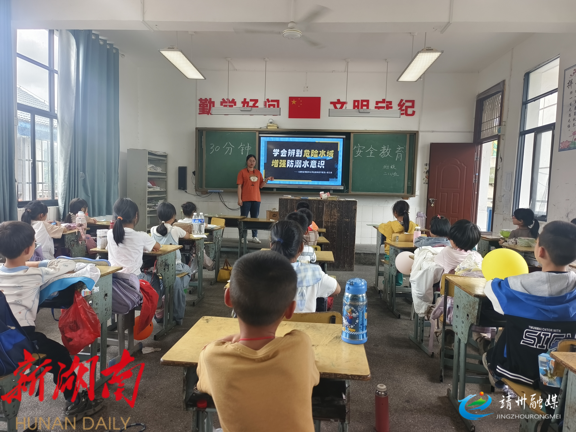 教师在讲解防溺水知识(蒋婕 摄)