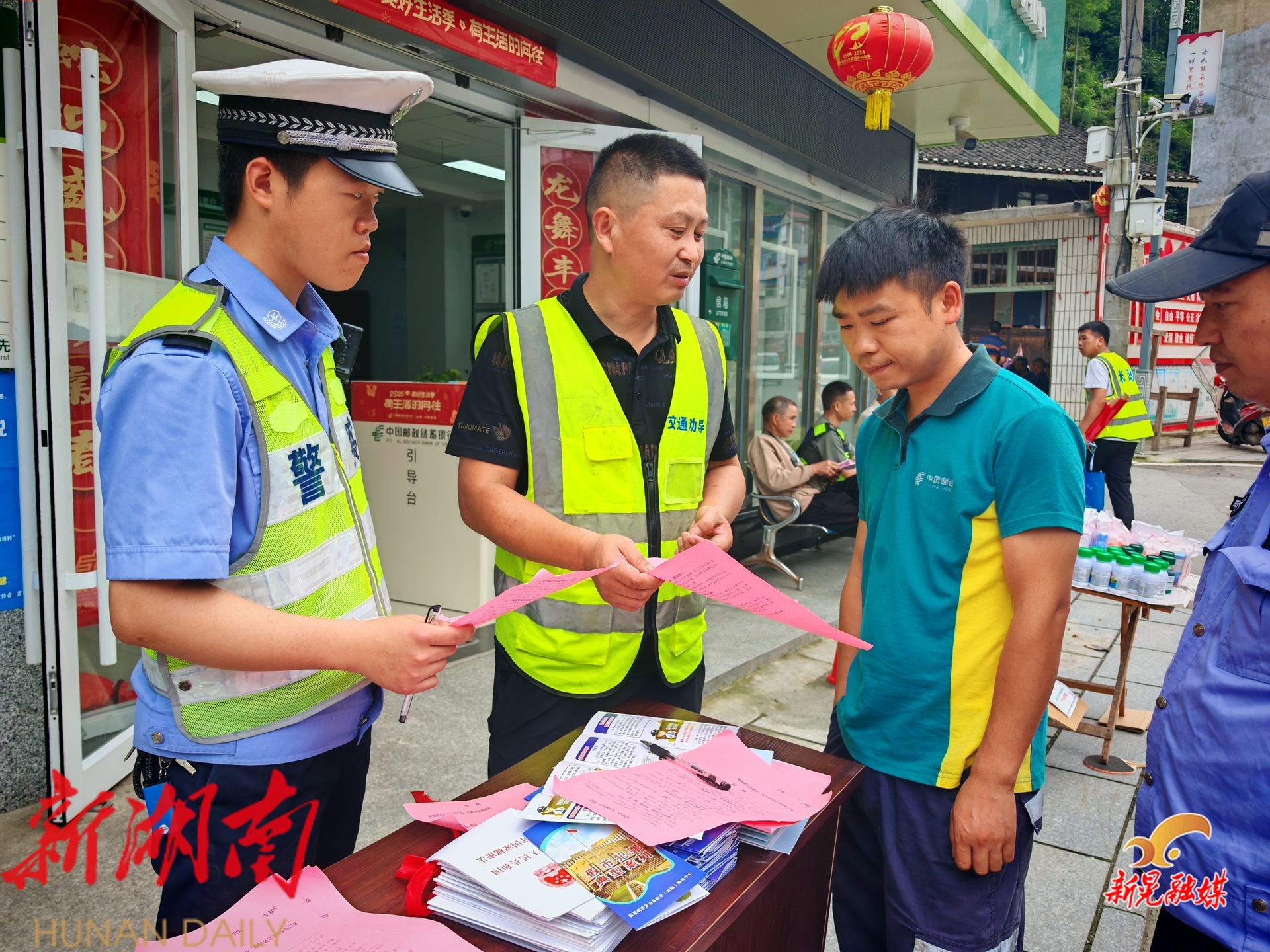 新晃融媒6月4日讯(记者:舒昊)为进一步提升辖区群众交通安全意识,有效预防和减少道路交通事故,6月3日,米贝苗族乡联合乡派出所积极开展“一盔一带”道路交通安全宣传活动,切实守护群众出行安全。
