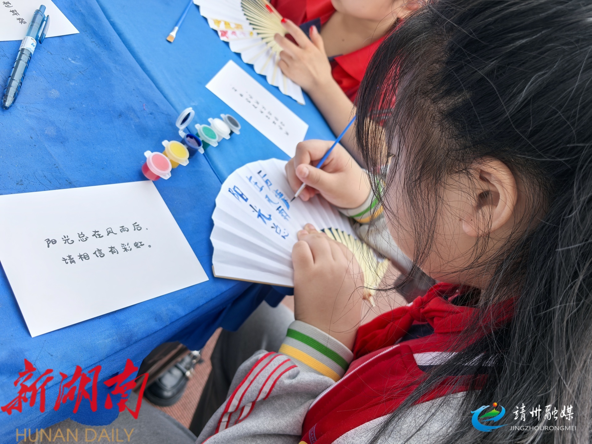 孩子们在折扇里写下励志话语(周悦伊 摄)