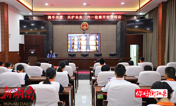衡阳县融媒6月4日讯(记者:张兴宇 通讯员:何雨欣 ) 近日,衡阳县实验学校与衡阳县检察院以“携手关爱 共护未来”为主题开展了一场检察开放日活动,引领学生们零距离感受检察工作,构筑学生们的法治梦想。