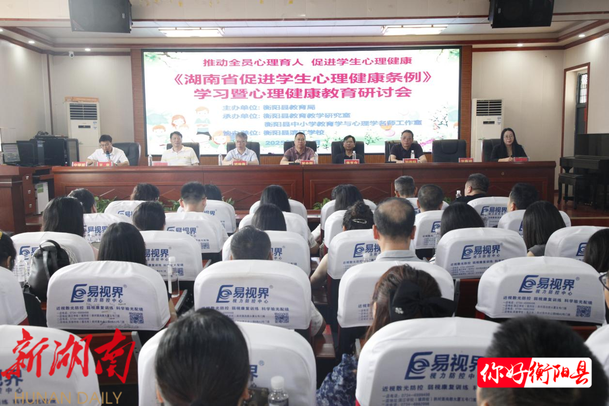 衡阳县融媒6月4日讯(记者:张兴宇 通讯员:王宇 欧阳向前 ) 5月29日,《湖南省促进学生心理健康条例》经湖南省第十四届人民代表大会常务委员会第十六次会议通过并公布。为扎实推进《条例》落地见效,6月3日,衡阳县教育局举行以“推动全员心理育人,促进学生心理健康”为主题的《湖南省促进学生心理健康条例》学习暨心理健康教育研讨会。