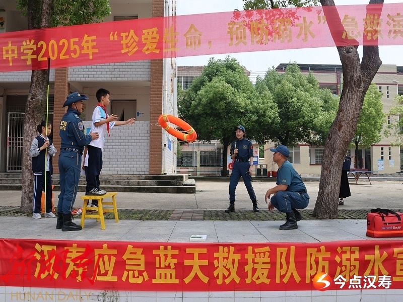 汉寿融媒6月5日讯 (通讯员:孙传义)近日,汉寿县龙阳中学邀请汉寿县蓝天救援队志愿者来学校开展防溺水应急演练教育活动。