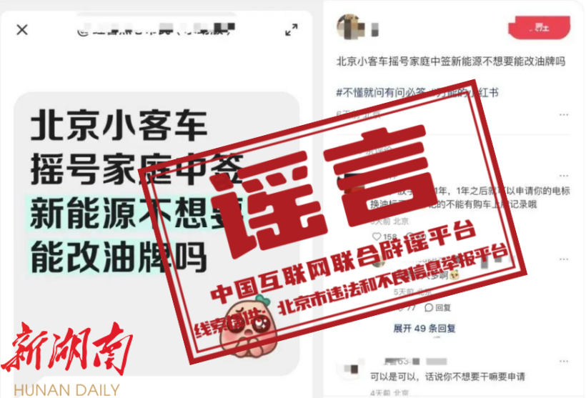 谣言:北京家庭新能源汽车指标中签后放弃,可直接转为油车指标?