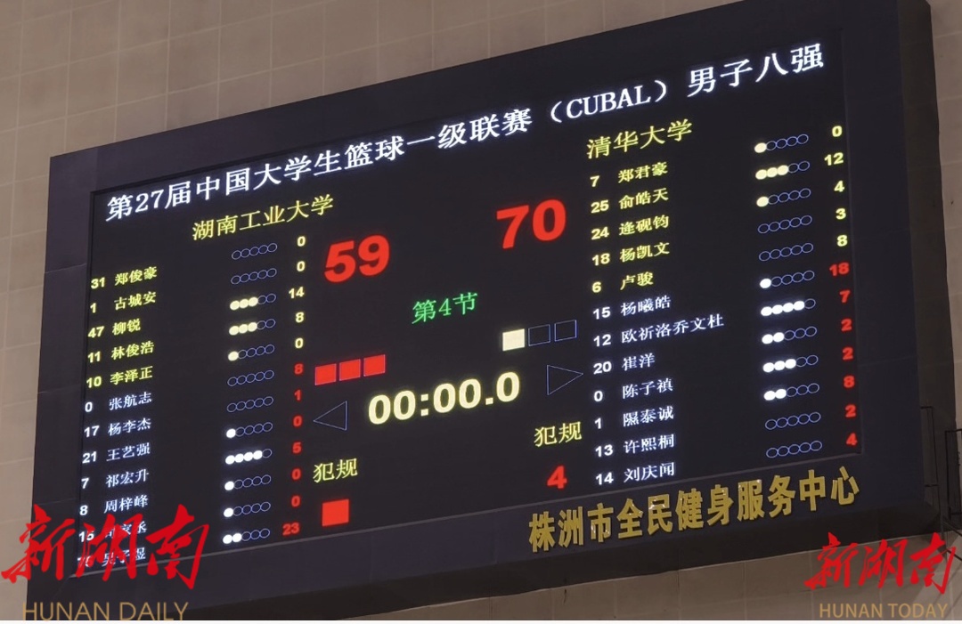 湖南日报6月2日讯(全媒体记者 李永亮 刘韵霞)今晚,首次闯进中国大学生篮球联赛(CUBAL)全国八强的湖南工业大学男篮,在株洲主场迎战上届冠军清华大学男篮,以59比70憾负。
