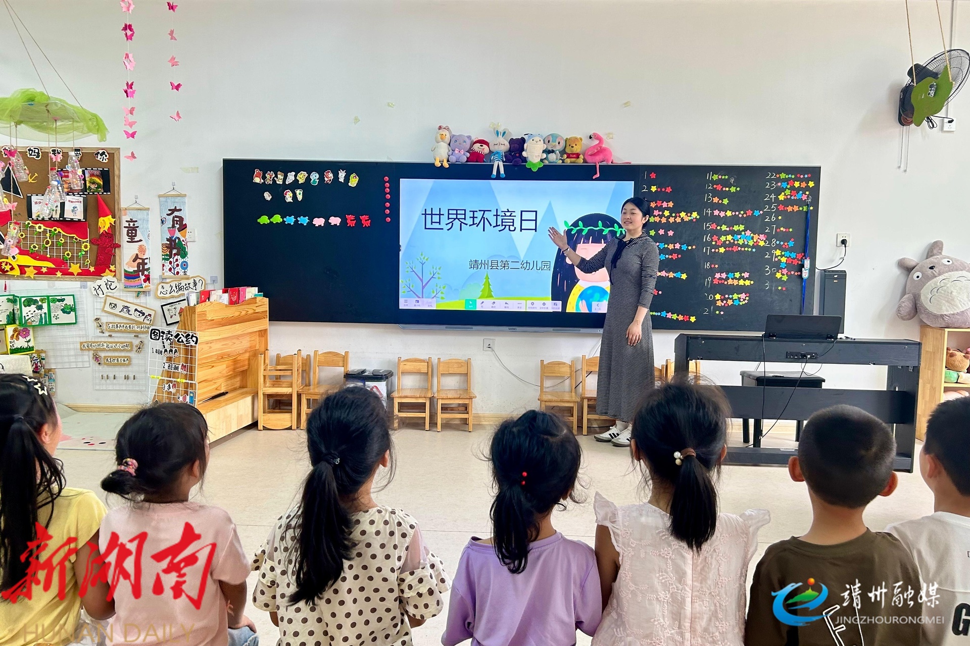 靖州融媒6月5日讯 (通讯员 唐蓉珍 吴青阳 李兰) 6月5日是世界环境日,靖州苗族侗族自治县第二幼儿园开展“爱护环境 童心同行”主题活动。
