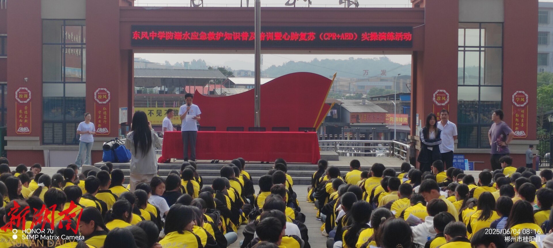 新桂阳6月5日讯(通讯员 吴定武) 6月4日,县红十字会联合东风中学开展防溺水应急救护知识普及培训暨心肺复苏(CPR+AED)实操演练活动,为全校师生送上一堂兼具理论深度与实践价值的生命安全教育课。