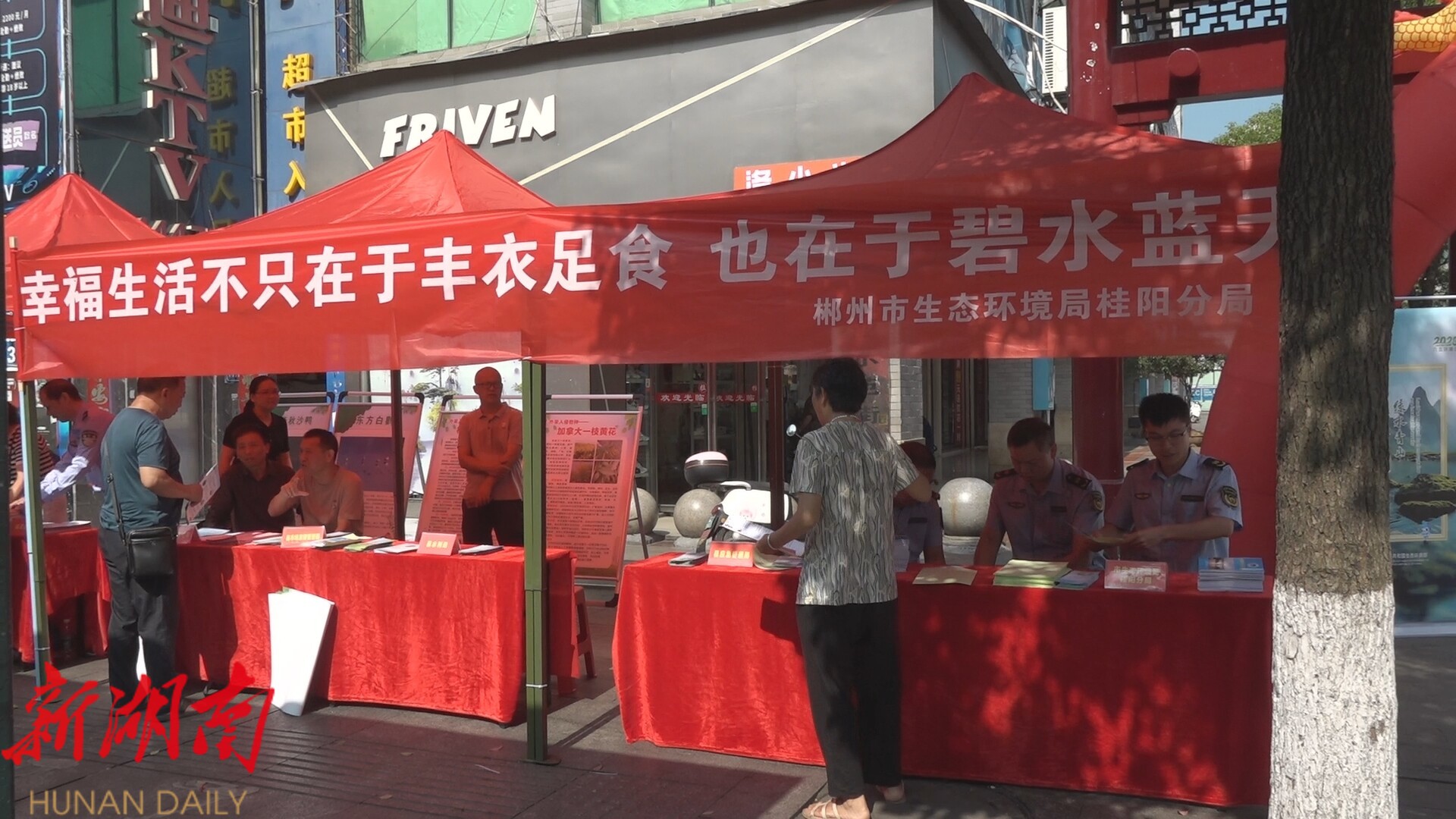郴州市生态环境局桂阳分局、县人民检察院、县城管局、县应急管理局等10余家单位,精心搭建起相应的宣传展台。工作人员向过往市民发放《环保保护法律法规汇编》、《危险废物相关知识》等宣传资料与宣传海报,普及宣传环保知识。 县检察院的法律咨询台前,检察官针对“生活中遇到环境污染如何维权”等热点问题,结合典型案例,回应市民关切。