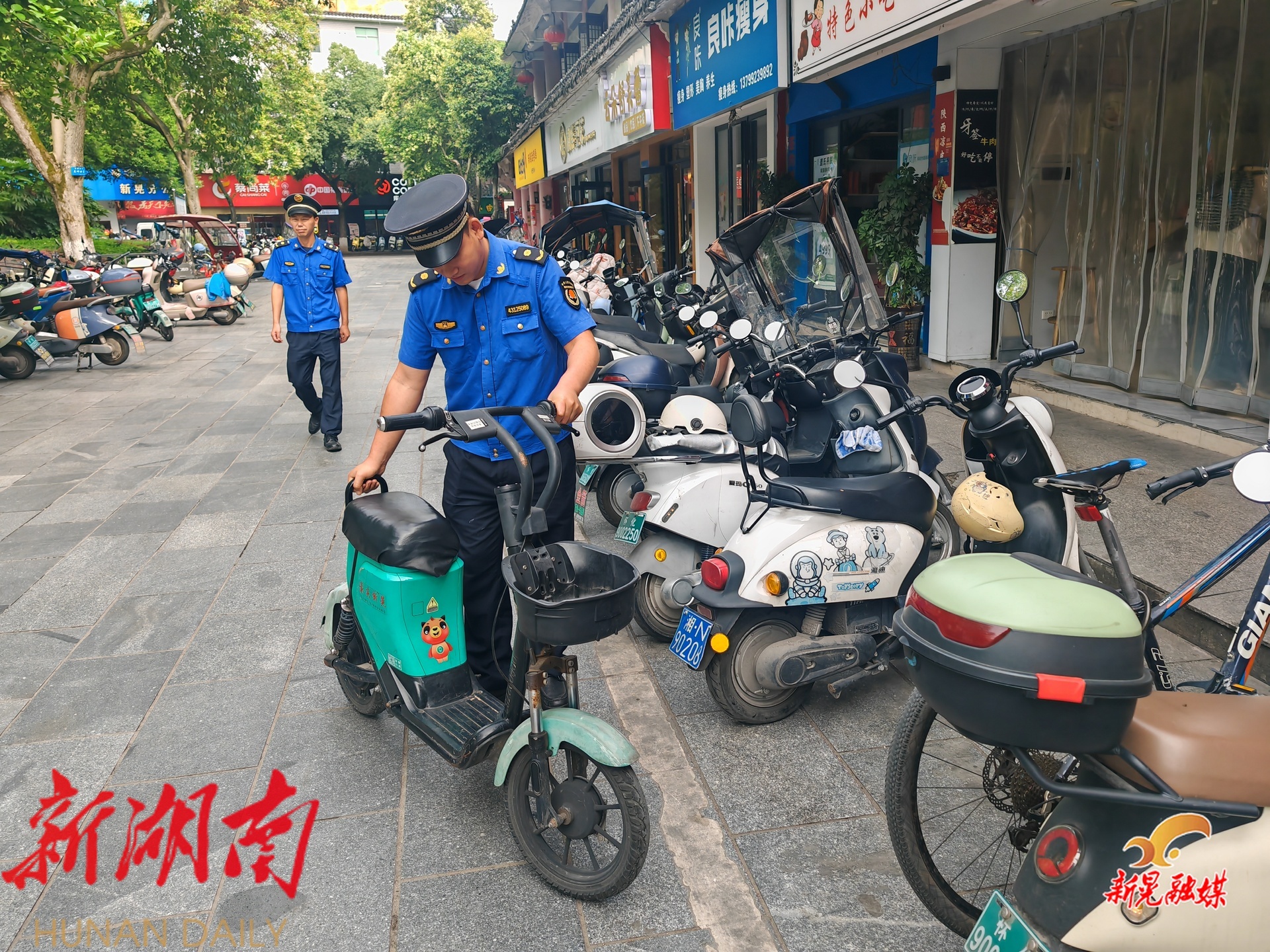 6月5日 , 执法人员以新晃一中考点周边区域为重点展开巡查,大力查处流动摊点占道经营、非机动车乱停乱放等违法行为,规范车辆管理,确保考点周边交通畅通。