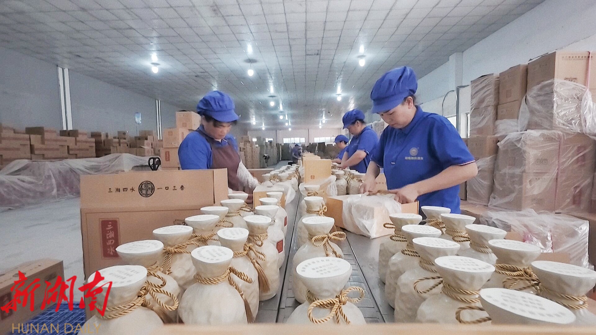 “他们到这里就业,可以解决她们家庭各方面的问题,比如小孩儿读书、赡养老人。而且我们上班时间也很合理,早上八点到下午五点钟,五点钟以后我们可以忙自己的农活,几不误。我们这边工资是按计件算,老员工每个月的工资基本上是4000元左右,有时是4000元以上。”湖南湘泉酒业包装车间主任李晖笑着说道。