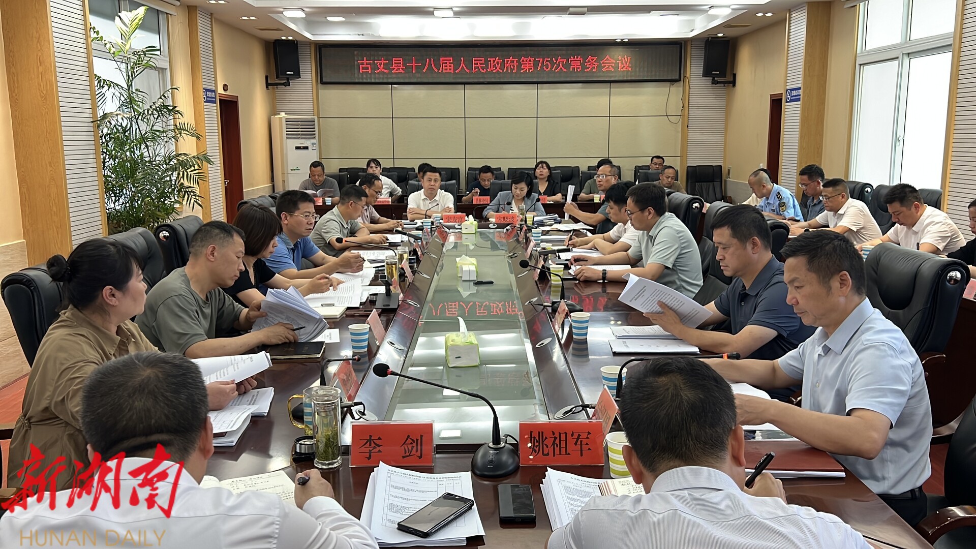 新湖南客户端6月5日讯(通讯员 周湫婧)6月5日,古丈县委副书记、县长陈建新主持召开县第十八届人民政府第75次常务会议,会议传达学习了《求是》杂志发表的习近平总书记重要文章《加快建设教育强国》、习近平总书记致中国少年先锋队第九次全国代表大会的贺信及祝贺复旦大学建校120周年的贺信精神,中共中央、国务院修订后的《党政机关厉行节约反对浪费条例》,全州实施“七大攻坚”暨经济运行、项目建设、大抓落实督查会议精神,审议了有关文件,听取了工作汇报。