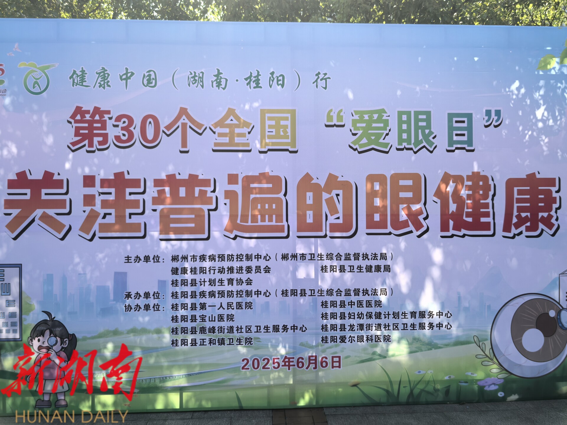 新桂阳6月6日讯(记者 刘克坚) 6月6日是第30个全国“爱眼日”,我县在蔡伦广场开展“爱眼日”宣传教育活动。