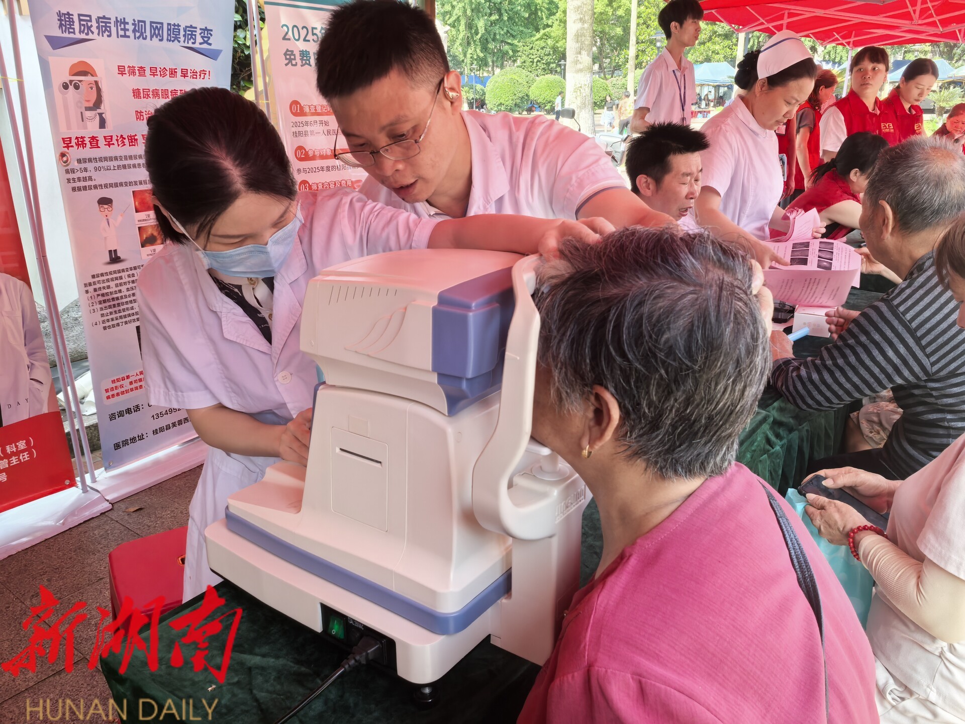 健康咨询区,医师们耐心解答近视、远视、弱视、白内障等疾病的预防和治疗疑问;免费检查区,医务人员用专业设备为居民进行视力检测,并依据结果给予科学建议;健康宣教区,展板展示、宣传册发放与现场讲解结合,普及眼健康知识,提升居民爱眼护眼意识。
