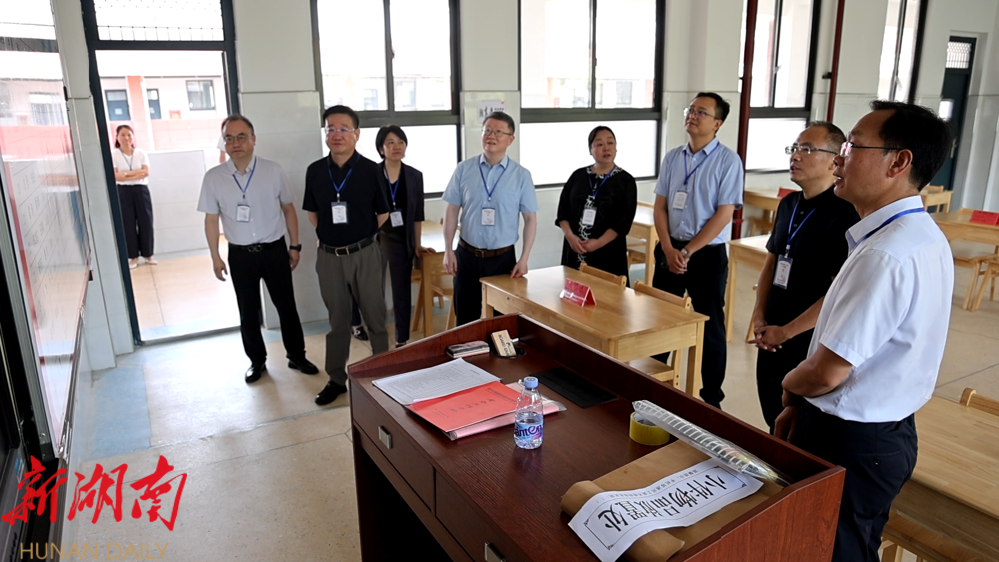 在津市一中,邱献兵一行先后实地查看了考点监控室、学校食堂、广播室等地,详细了解了考务组织、考场布置、应急预案、服务保障等情况。