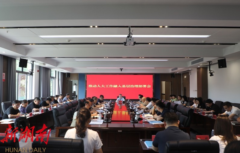 会议由市人大常委会副主任蒋勇林主持。会议学习了《组织各级代表开展“三亮、五进、当好五员”活动方案》和《中共常德市人大常委会党组关于推动人大工作融入基层治理的指导意见》;襄阳街街道围绕居民议事会进行经验交流分享;相关单位负责人就居民议事会建设推进工作以及提升人大工作融入基层治理能力的具体举措作表态发言。