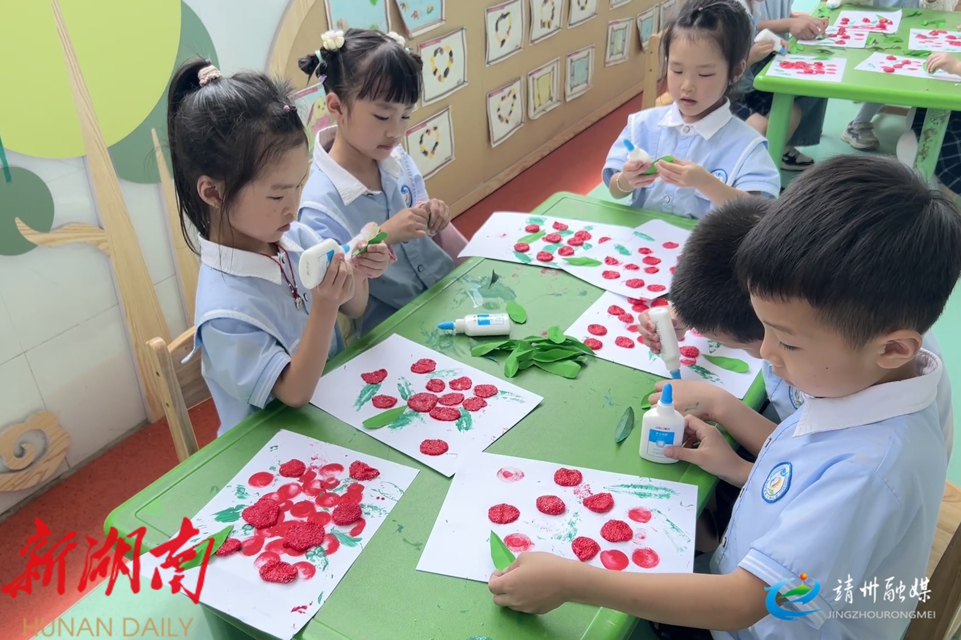 幼儿正在制作杨梅手工(潘斯涵 摄)
