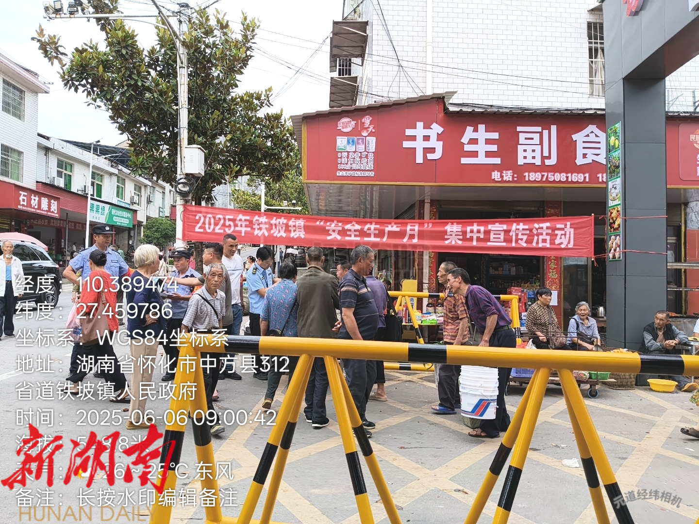 中方融媒6月6日讯 (记者:陈明 通讯员:杨海溶)为切实增强全民安全意识,6月5日至6日, 中方县铁坡镇以“人人讲安全,个个会应急——查找身边安全隐患”为主题,利用赶集日组织镇应急管理办、镇综合行政执法大队在集市开展“安全生产月”现场宣传活动。