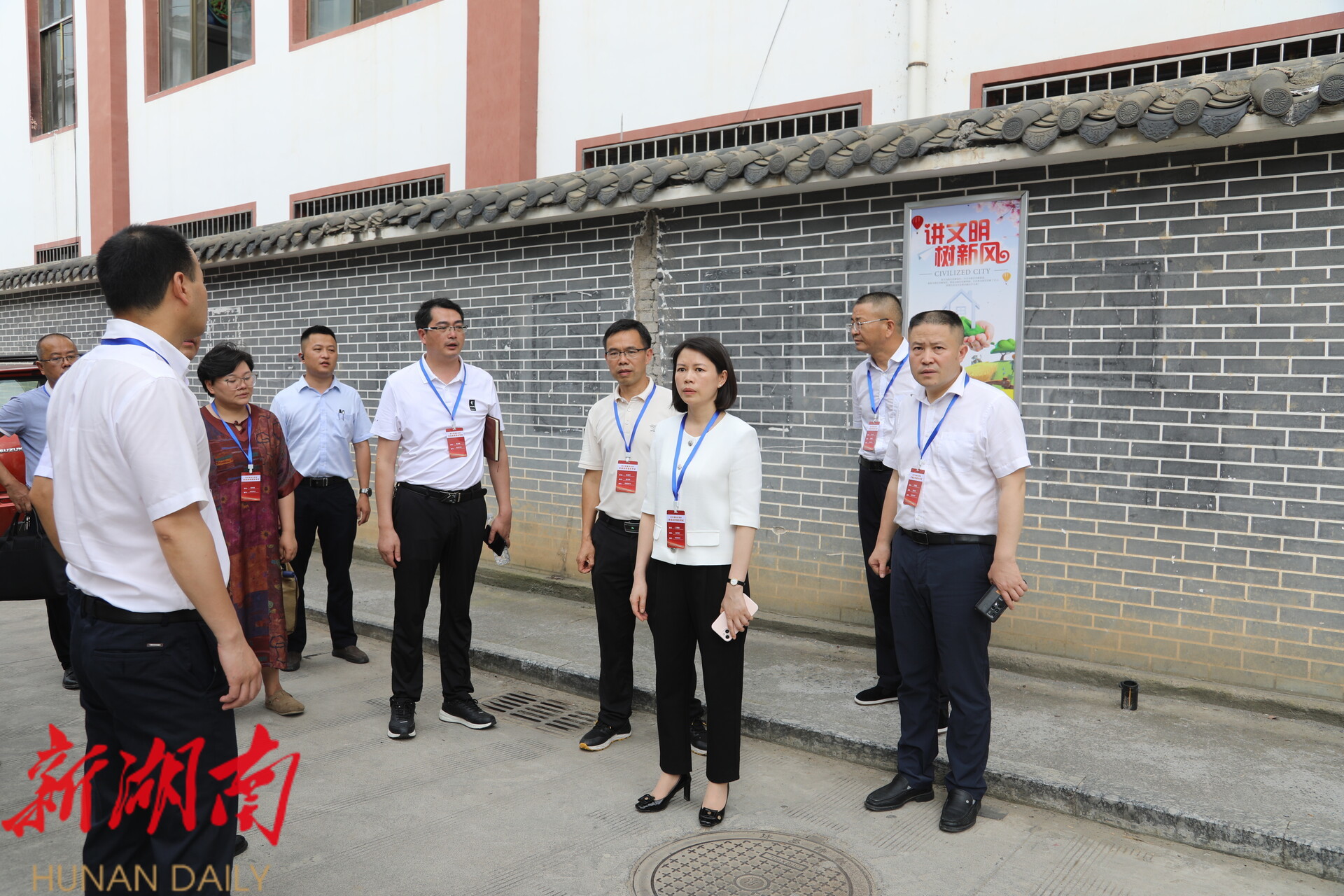 图为县委副书记、县长王慧敏一行在城步一中察看考场周边环境