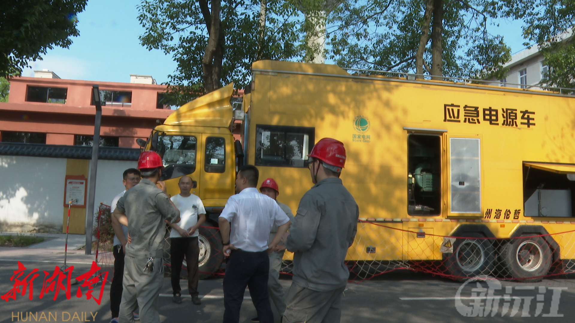 随后,一辆应急电源车缓缓驶入沅江市第一中学校园。身着工作服、头戴安全帽的工作人员迅速行动起来,他们配合默契,有条不紊地从车上卸下电缆和安全围栏,动作娴熟而敏捷。不一会儿,应急电源就被成功连接,为学校提供了坚实可靠的应急电力保障,即便遇到突发状况,也能确保考场电力“零中断”。